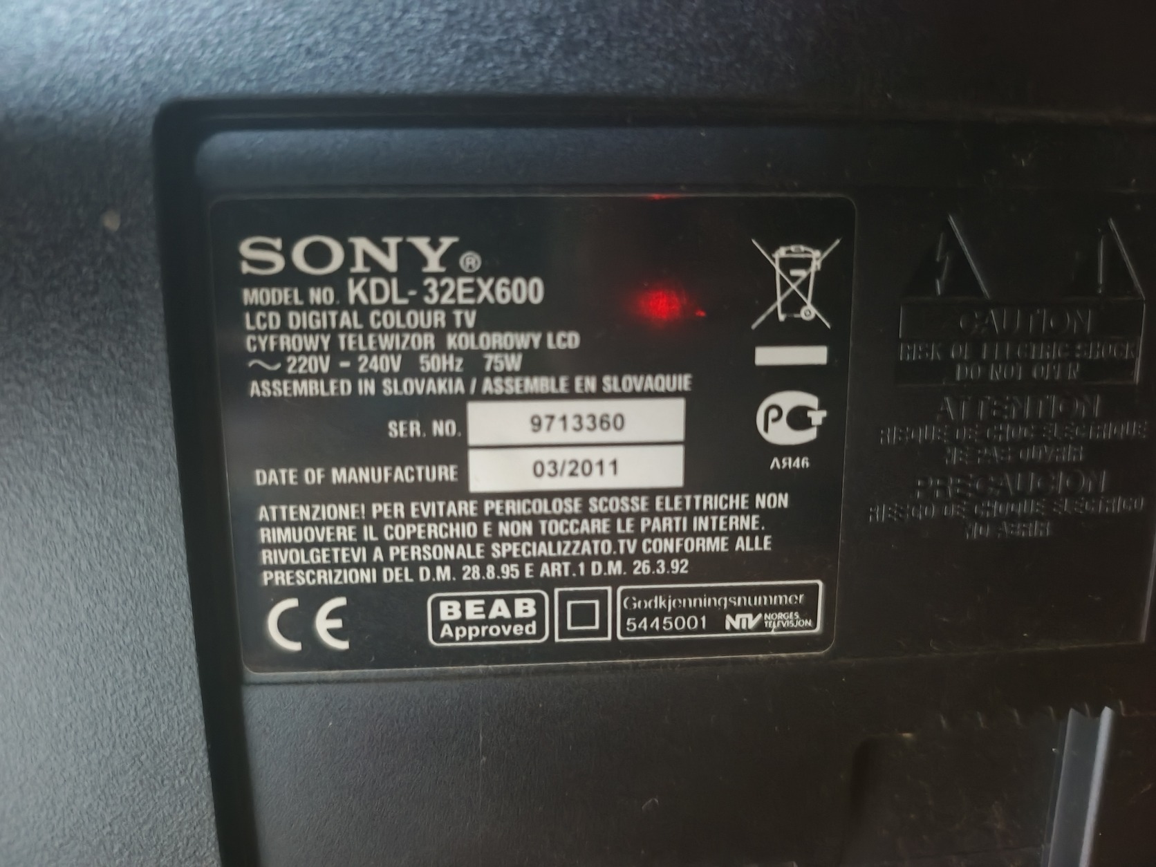 Sony bravia KDL32EX600