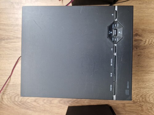 USB, 3.5mm jack amiről tud zenét fogadni, ezenfelül CD és rádió. Hibátlan és jól szól méretéhez képest. Távirányítója megvan, csak elfelejtettem lefotózni.