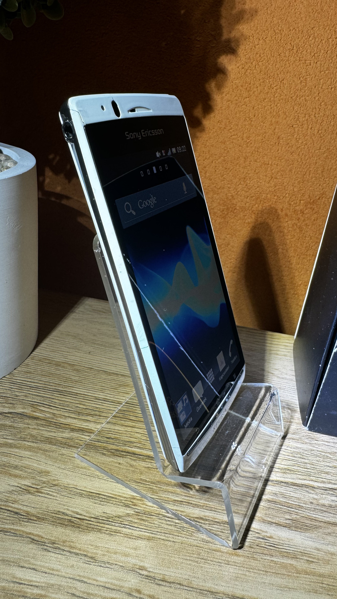 Eladó egy a címben is említett Sony Ericsson Xperia Arc S mobiltelefon fehér színben. Szép állapotban van korához képest, azonban a szokásos helyen repedt sajnos. Ahogy a fotón is látható minden gyári tartozéka megvan.