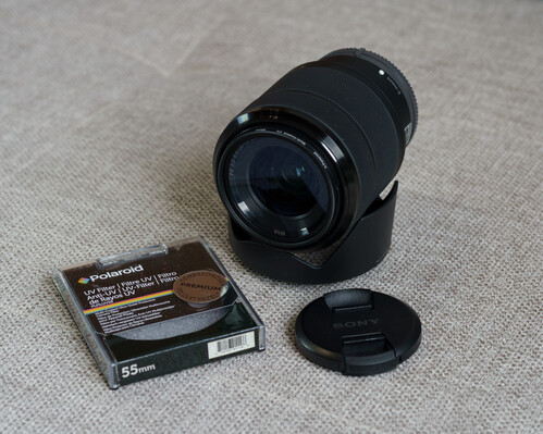 (Első hátsó kupakkal, napellenzővel, 55mm UV filterrel.)