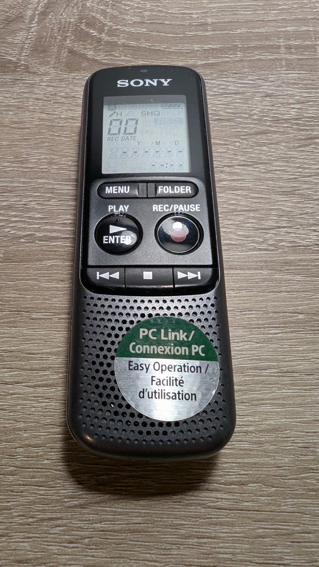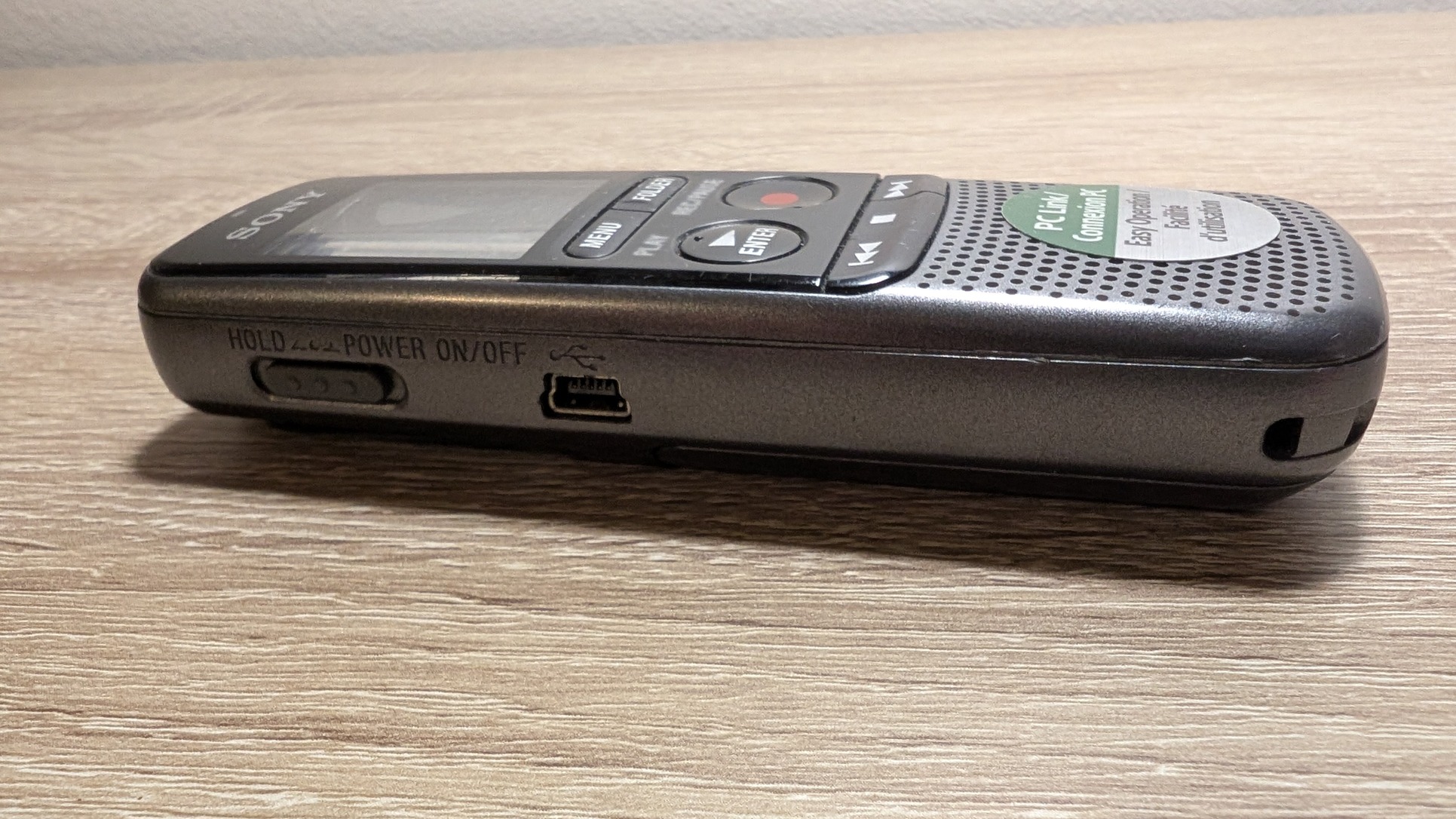 Eladó Sony diktafon 2GB beépített memóriával. 2 db AAA elemmel működik. Kisebb karcok vannak rajta, de jól működik. A hangfájlokat sima mini USB-vel lehet lemásolni.