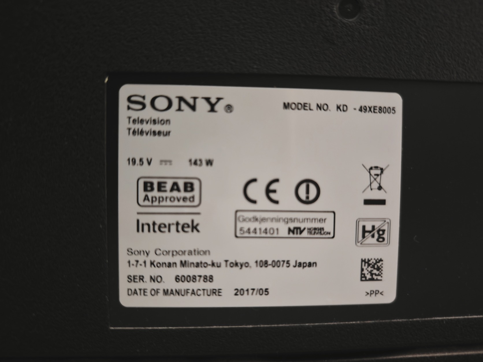 Sony KD-49XE8005 49" TV