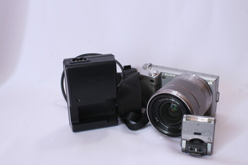 Eladó Sony NEX-5 váz (szériaszám: 2255728) és csak vele együtt eladó egy 18-55mm f/3.5-5.6 OSS objektív (szériaszám: 2268334) is, a képen látható tartozékokkal (1 gyári akku és gyári töltő, vállpánt, kis vakuja, UV szűrő). A váz jól működik, de kopottas esztétikája van, az objektív nem karcos vagy poros. UTOLSÓ ÁRON
