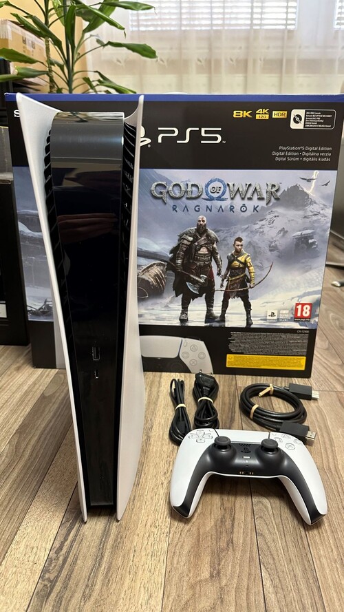 Keveset használt PS5 (CFI-1216B) Digital Edition konzol, 2024.12 garanciális, minden tartozékával, hibátlan, karcmentes állapotban eladó. Gyári dobozos (kontroller, HDMI-kábel, USB-kábel, tápkábel, talp).