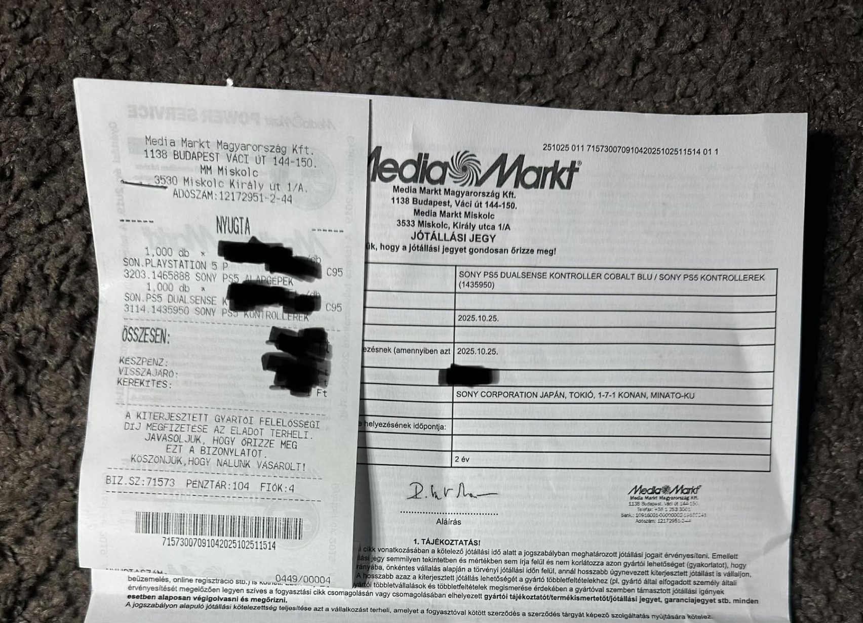 2025.10.25.-én lett vásárolva MediaMarkt-ból. Egyszerűen a 2 hónap alatt, akkor lett bekapcsolva amikor megvettük. A konzolban, illetve a kontrollerben összesen, ha van 2 óra hossza játék!