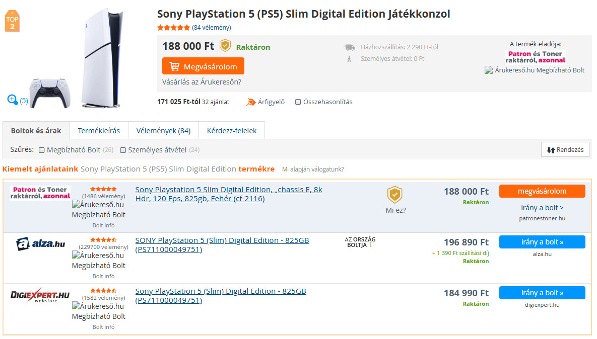 Processzor: Sony PlayStation 5 (PS5) Slim Digital Edition