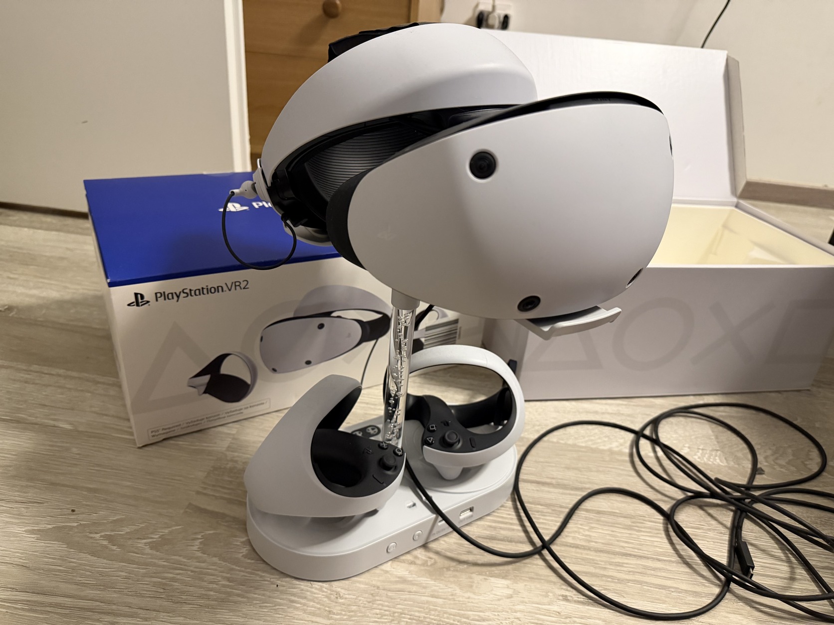Eladó a képeken látható hibátlan PSVR 2 headset dobozában tartozékaival 2026.11.21-ig papiros Alza garanciával.