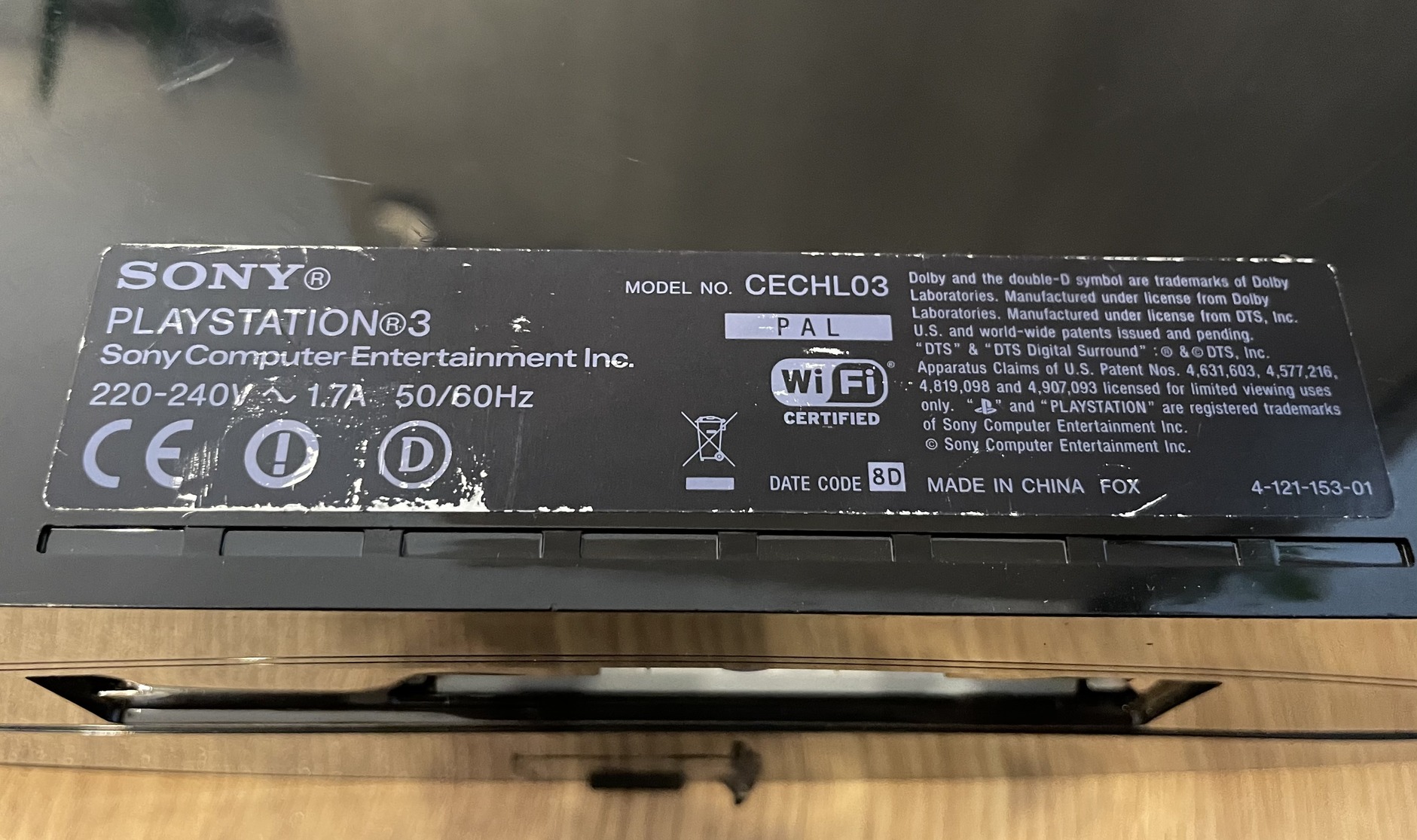 CECHL03 szériaszám, 80GB háttértárral.
