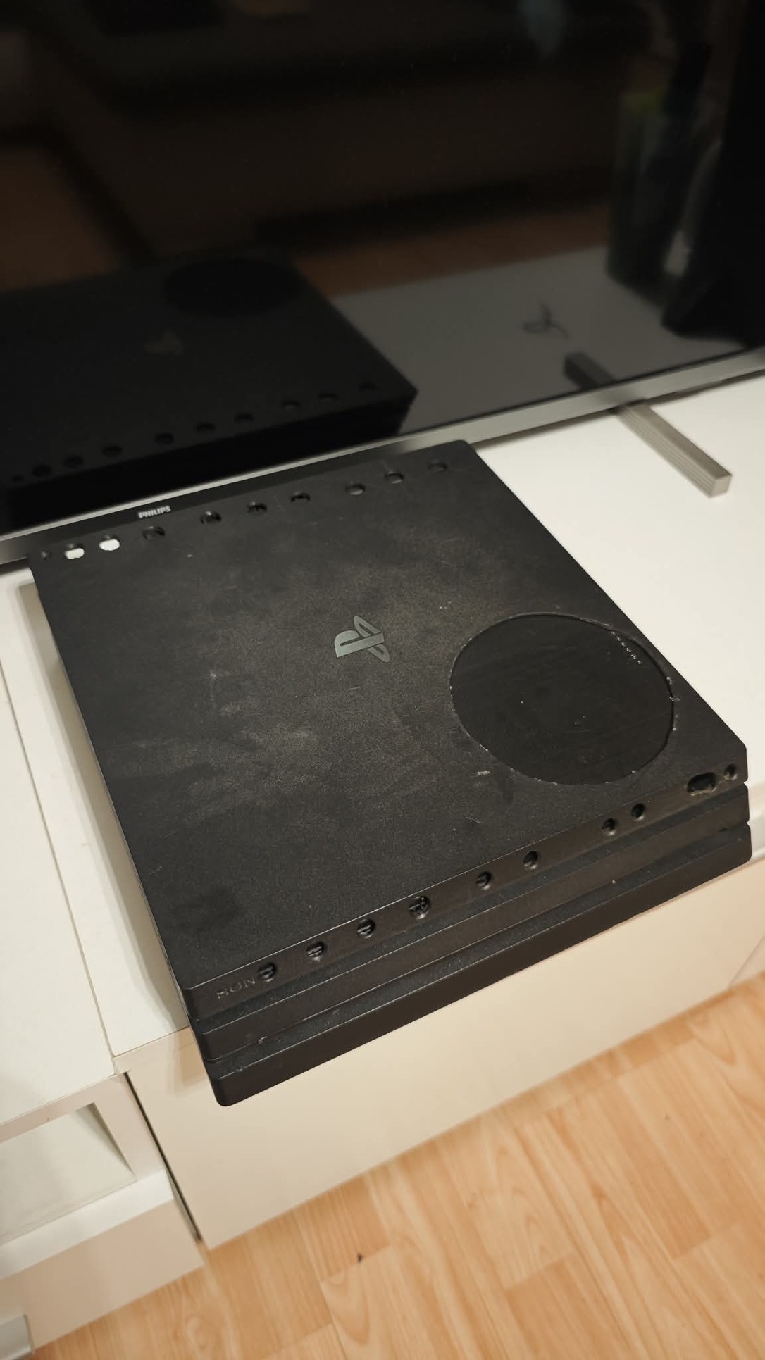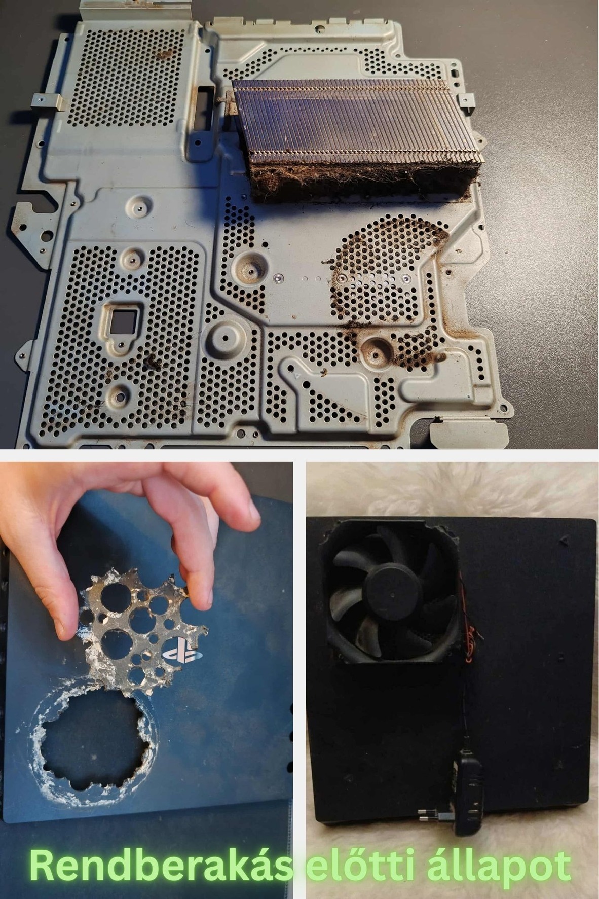 A "szellőzős kiadás": kb. 5-6 hónapja vettem marketplacen egy érdekes figurától. Kitisztítottam, és újrapasztáztam. Az eredeti tulajdonos, úgy gondolta kicsit moddolja a konzolját, gondolom a hűtés nem volt rendben a brutális mennyiségű kosz alapján amit a gépben találtam erre következtetek. 3 különbőző beavatkazást hajtott végre, a konzol tetején a ventilátor felett kivágta a műanyagot, a konzol alján szintén vágott egy négyzetes lyukat (amihez ragasztva volt egy ventilátor kívülről) majd körbe elhelyezett jó pár nyílást a műanyagon. A nagy nyílásokat lefedtem egy porszűrő hálóval, meg simára reszeltem műanyagot hogy ne álljon bele a kezembe, így kicsit esztétikusabban néz ki. A gép halk, hűvös, nem büdös, cserébe nem a legszebb darab. Itt-ott karcos és néhol kicsit el van színeződve a borítás. Az ára is tükrözi ezt. PS4 exklúzív játékok futtottak rajta és a RockBand 4. Akinek csak a teljesítmény számít, és a konzol külseje kevésbé annak jó választás (így voltam vele én is). A képek között láthatóak a tisztítás előtti/utáni állapotok