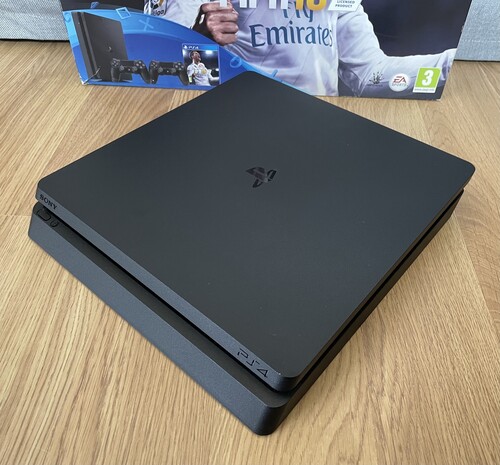 Eladó használt Sony PS4 Slim konzol gyári 1TB háttértárral. CUH-2116B szériszám.