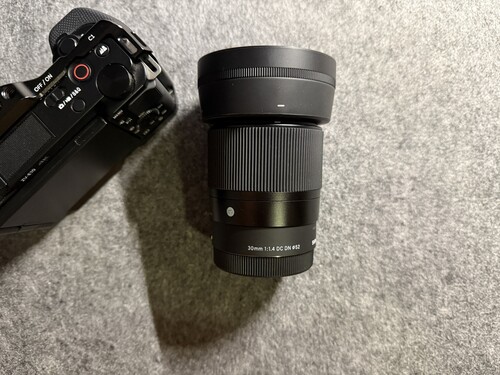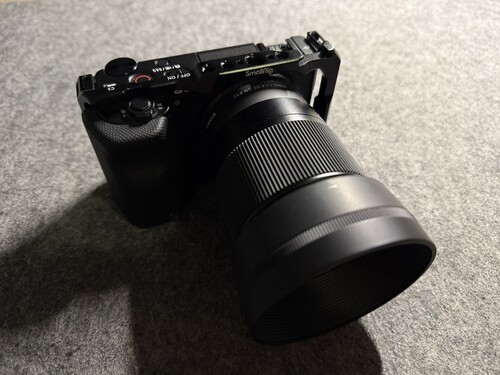Sony ZV-E10 + Sigma 30mm f/1.4 + Smallrig cage + smallrig töltő, akku