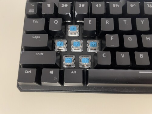 Eladóvá vált kihasználatlanság miatt a kék switches angol kiosztású mechanikus billentyűzetem. Pár billentyűsapka kopottas a WASD és környékén, de ezt leszámítva semmi baja, rendszeresen volt tisztítva, gombok nincsenek beragadva, működik mindegyik.