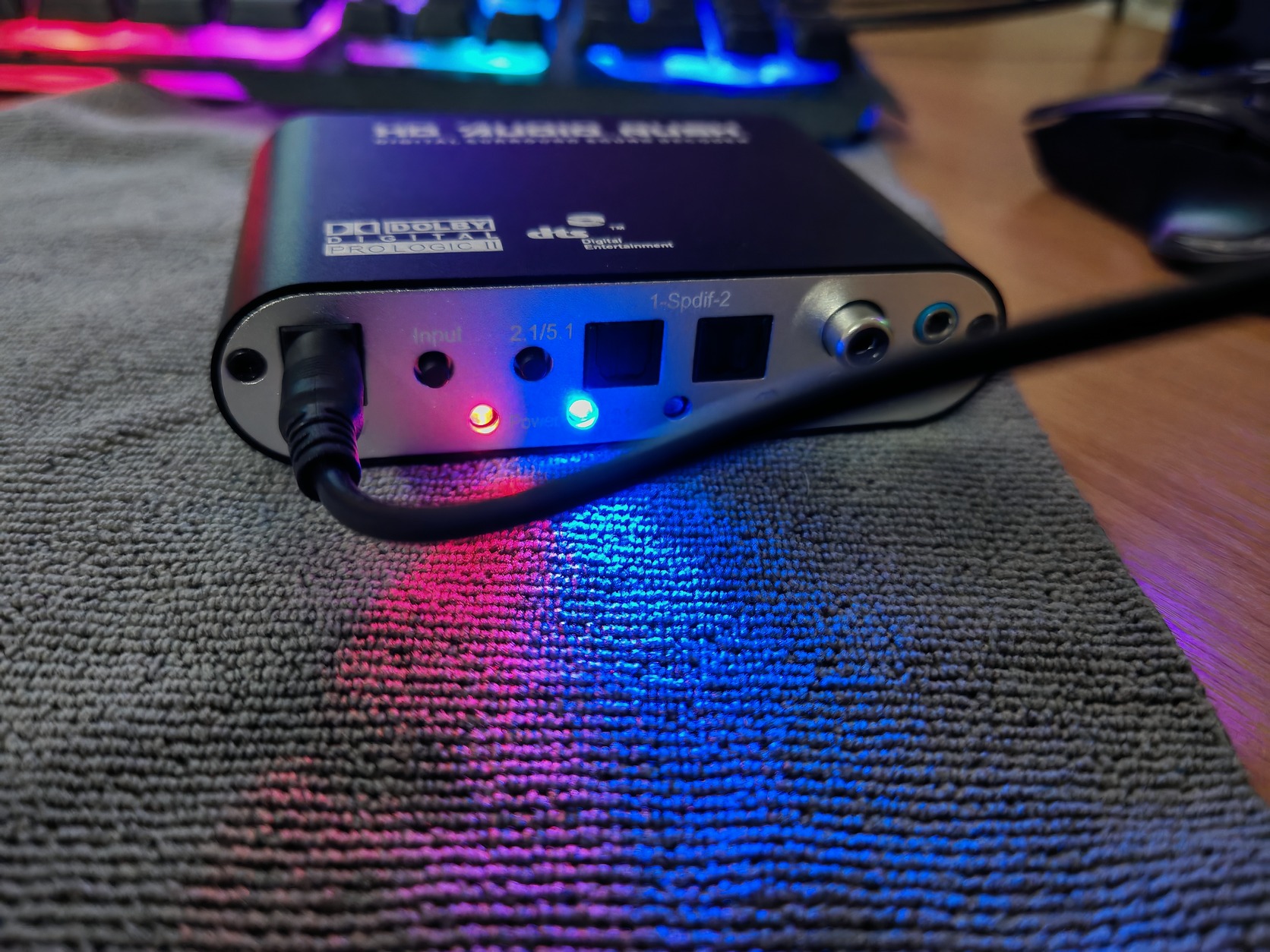 A jelet analóg 2.1 vagy 5.1 csatornás kimenetre bontja.