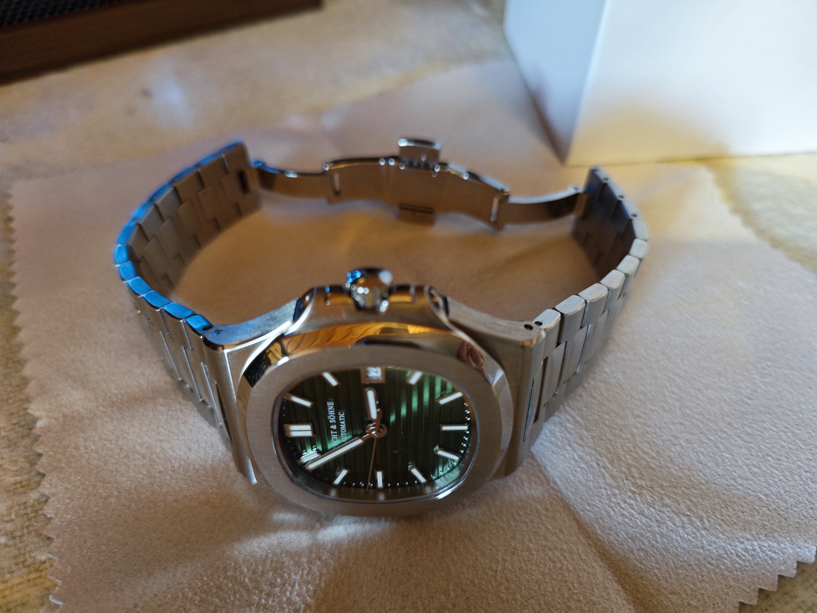 Eladó a címben említett homage automata karóra, új állapotban, csak felpróbálva volt. Japan 8215 miyotával szerelt, zöld számlappal. Pót szíj szemek, szereléshez eszköz, párna és kendő tartozékok. Posta vevő terhére.