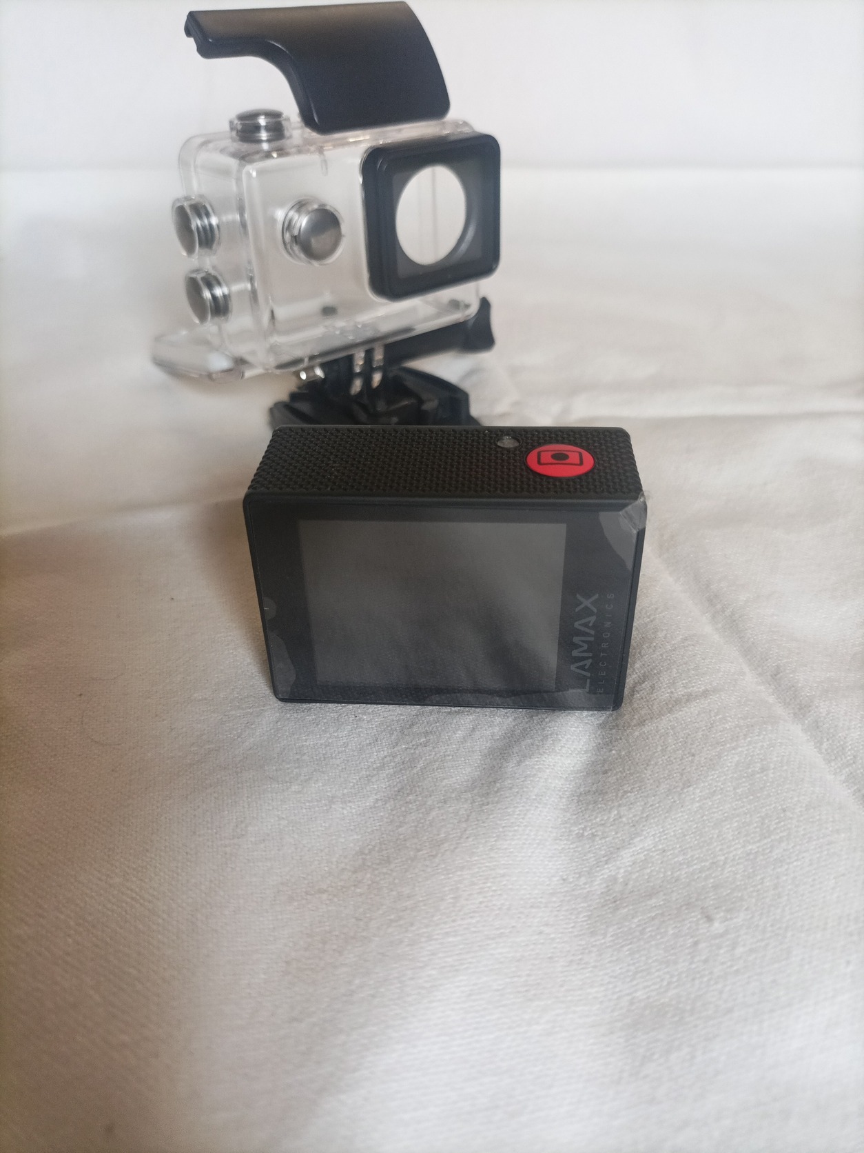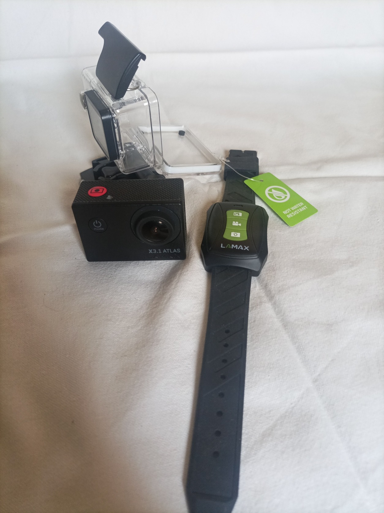 Eladó, egy teljesen újszerű (kb 3 percet ha ment) sportkamera, védő tokkal, wi-fi-s, 1080p/60 fps, 12Mp képrögzítés, karórás vezérlővel.