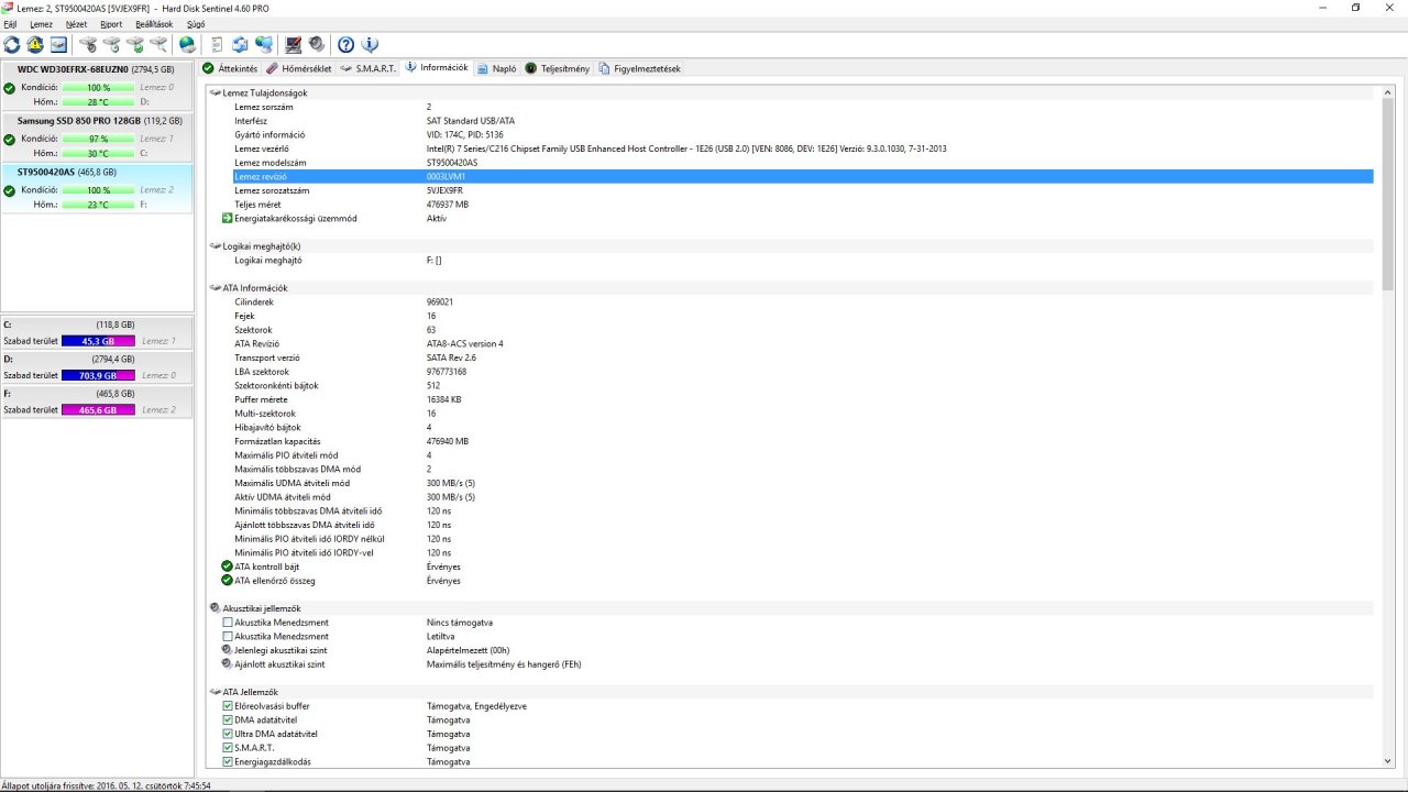 Seagate Momentus ST9500420AS 500GB 7200 RPM 16MB Cache-es használt vinyo 100/100 as (HDSentinel) eladó
