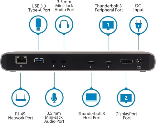Dual displays - DisplayPort 4096 x 2160p / 3840 x 2160p and Thunderbolt 3 USB-C - 4096 x 2160p / 3840 x 2160p