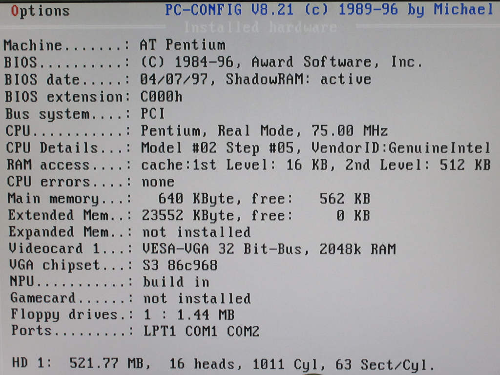 75 Mhz-es P1 lapban tesztelve PCPBench-el: