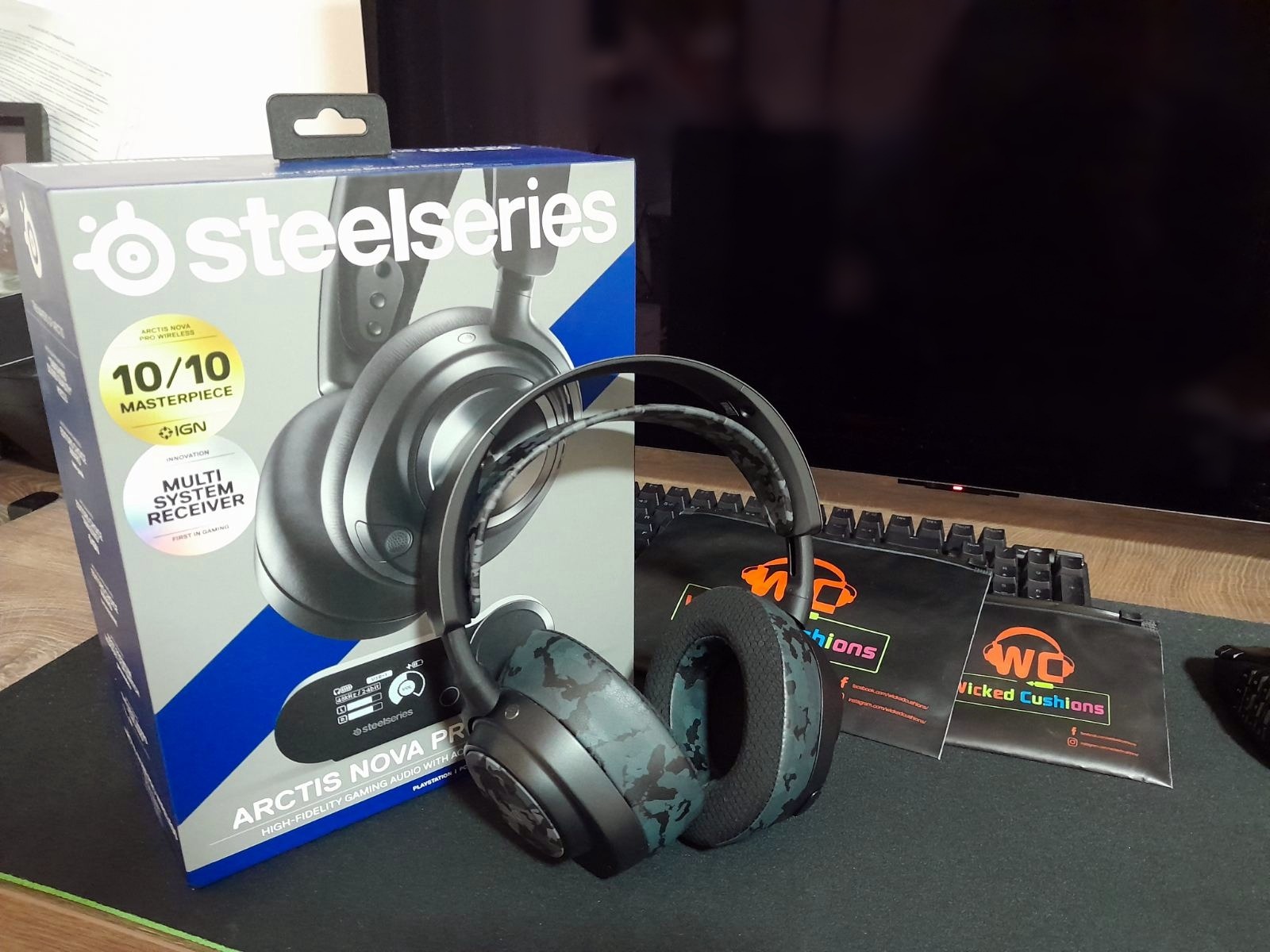 Eladó a képen látható, garanciális SteelSeries Arctis Nova Pro Wireless fejhallgató (hibátlan, karcmentes állapotban), Wicked Custom kiegészítőkkel. Az eredeti fejpántot és fülpárnát nem használtam.
