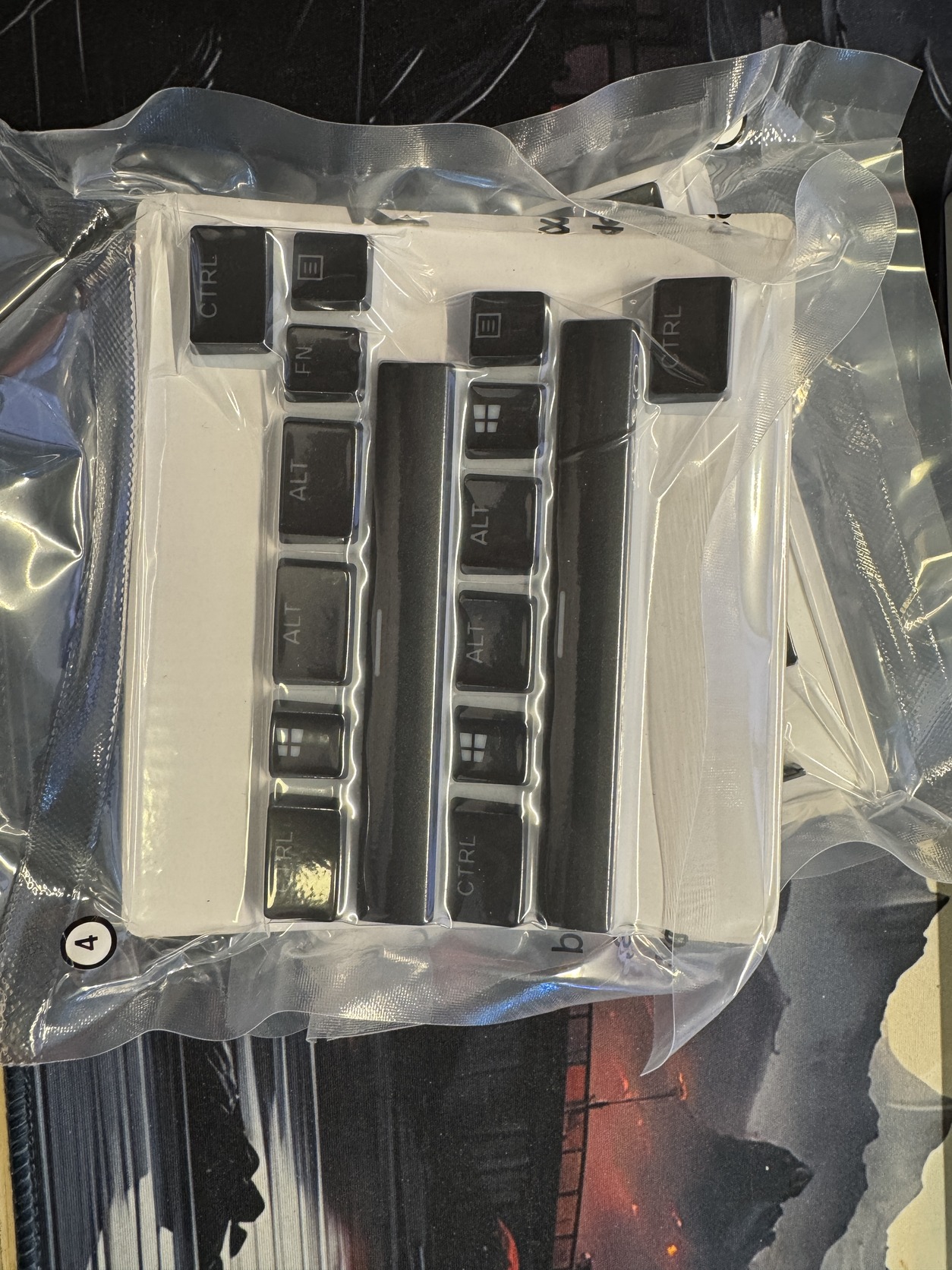 Ajándékba kapott, soha nem használt billentyűsapka szett. Egyik csomagja fel lett bontva, de kb. négy sapka felrakása után vissza is lett csomagolva, mert nem jött be. A csomag többi rész érintetlen. Valamiért fehér szett dobozában kaptam, de a fekete színű a készlet.