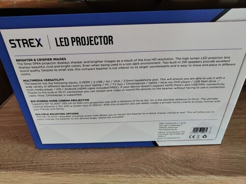 Strex Beamer – Full HD bemenet – 7000 Lumen – Streameljen a telefonjáról WiFi-vel – Mini projektor Szeretnéd otthon élvezni kedvenc műsoraidat? A Strex HD beamer projektorral nappaliját házimozivá alakíthatja! A beamer 7000 lumenes objektívvel van felszerelve, és 1920x1080P teljesítményű, így otthon is élvezheti a borotvaéles vetítést. Kis mérete ellenére ez a kompakt projektor nem rosszabb, mint sok nagyobb projektor, könnyen mozgatható és elhelyezhető különböző helyiségekben. Hajoljon a kanapéra, és kapcsolja be azt az izgalmas filmet!
