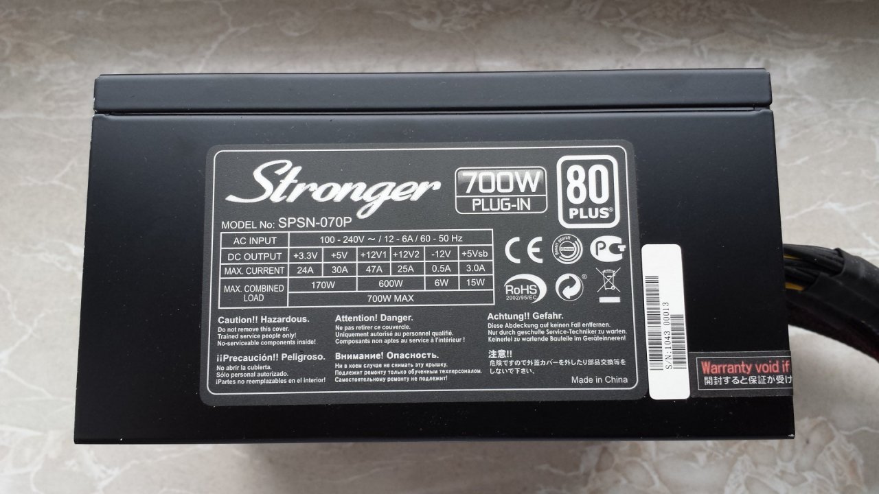 Eladó a fenti 80+-os Stronger SPSN-070P tápegység. Bontva a táp nem volt, tökéletesen működik! Tekintettel arra, hogy bontott gépből került kiszerelésre, csak a képen látható kábelekkel kerül eladásra így kábelhiányosan - szabvány csatlakozókkal rendelkezik, tehát beszerezhető hozzá még kábel. Tápkábel sincs hozzá, sem doboz sem egyéb tartozékok. Ami a képen látható: