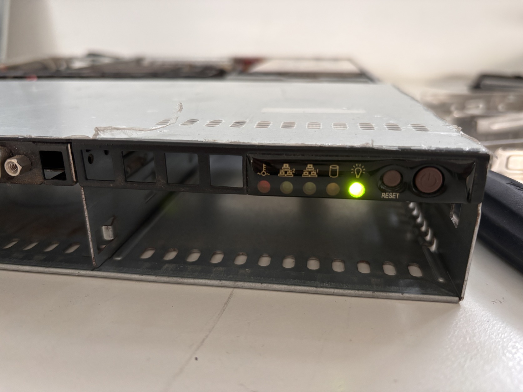 Probléma nélkül indul a BIOS-ban. Néhány normális kopás és por a korábbi rack használatból (lásd a fotókat).