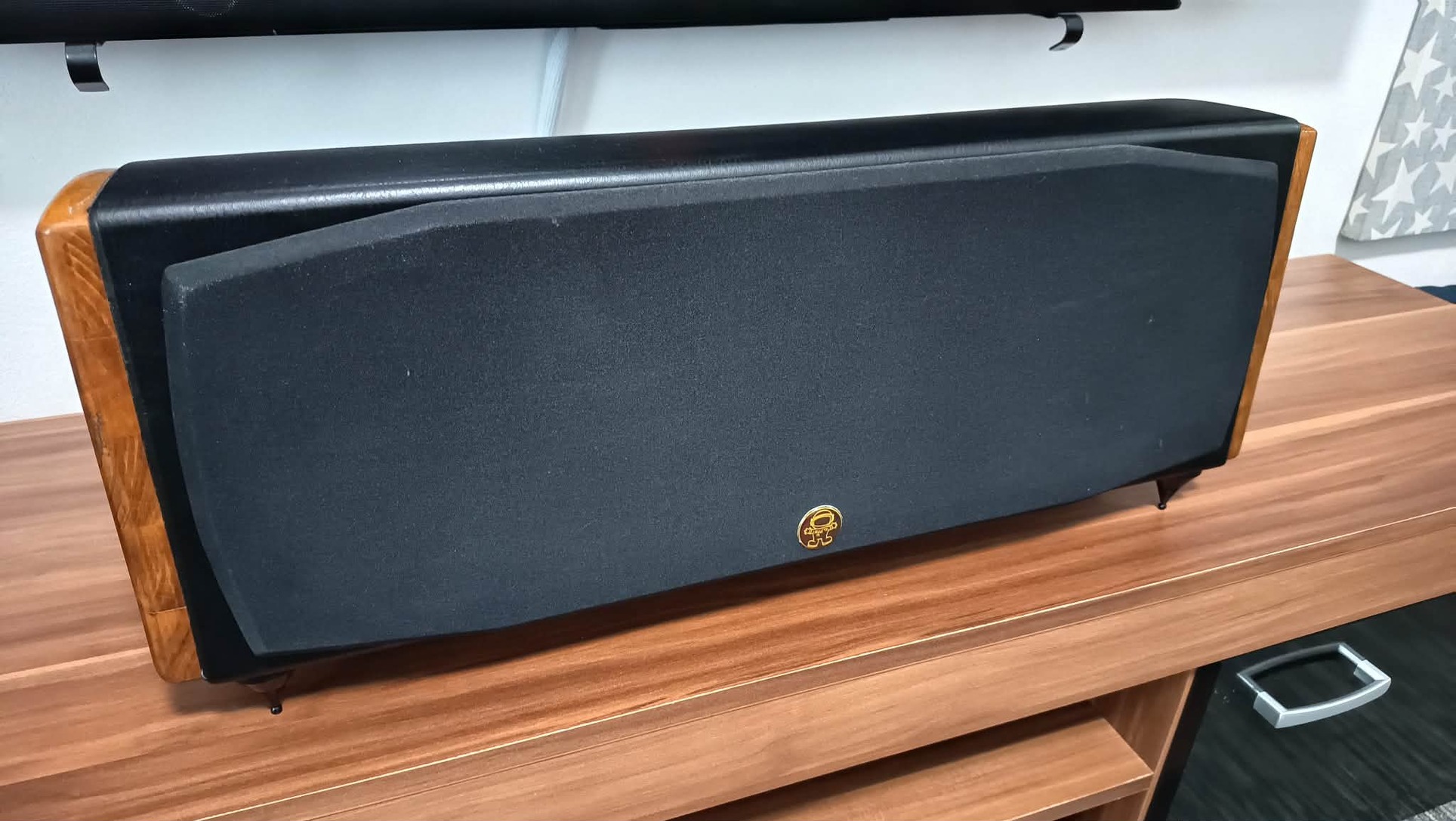Center: Hivi SS6N, Hivi X1-A hangszórók, hozzá illesztett hangváltó. Íves MDF doboz, bőr borítás, bikábelezhető, Kb. 60cm széles Kb. 13Kg.