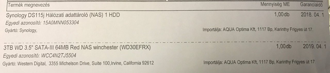 Synology DS115J NAS 3TB HDD-vel együtt - garanciával