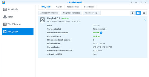 Eladóvá vált a címben szereplő NAS. Tartozik hozzá egy 2TB-os HDD is, amit a gyári diagnosztika jónak minősít, ahogy a képeken látszik, de lassan indul el vele a NAS.