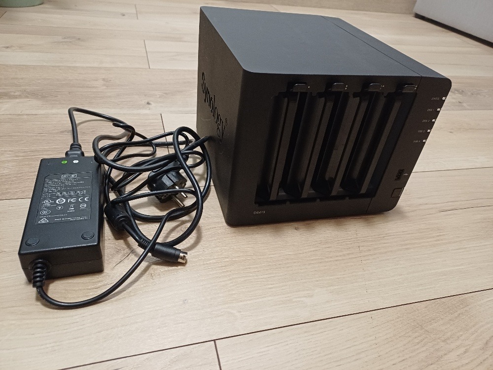 Eladó egy Synology DS413 négy lemezes NAS a tápegységével.