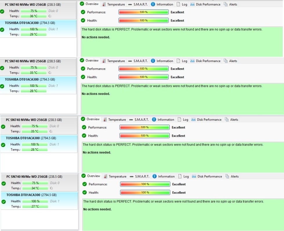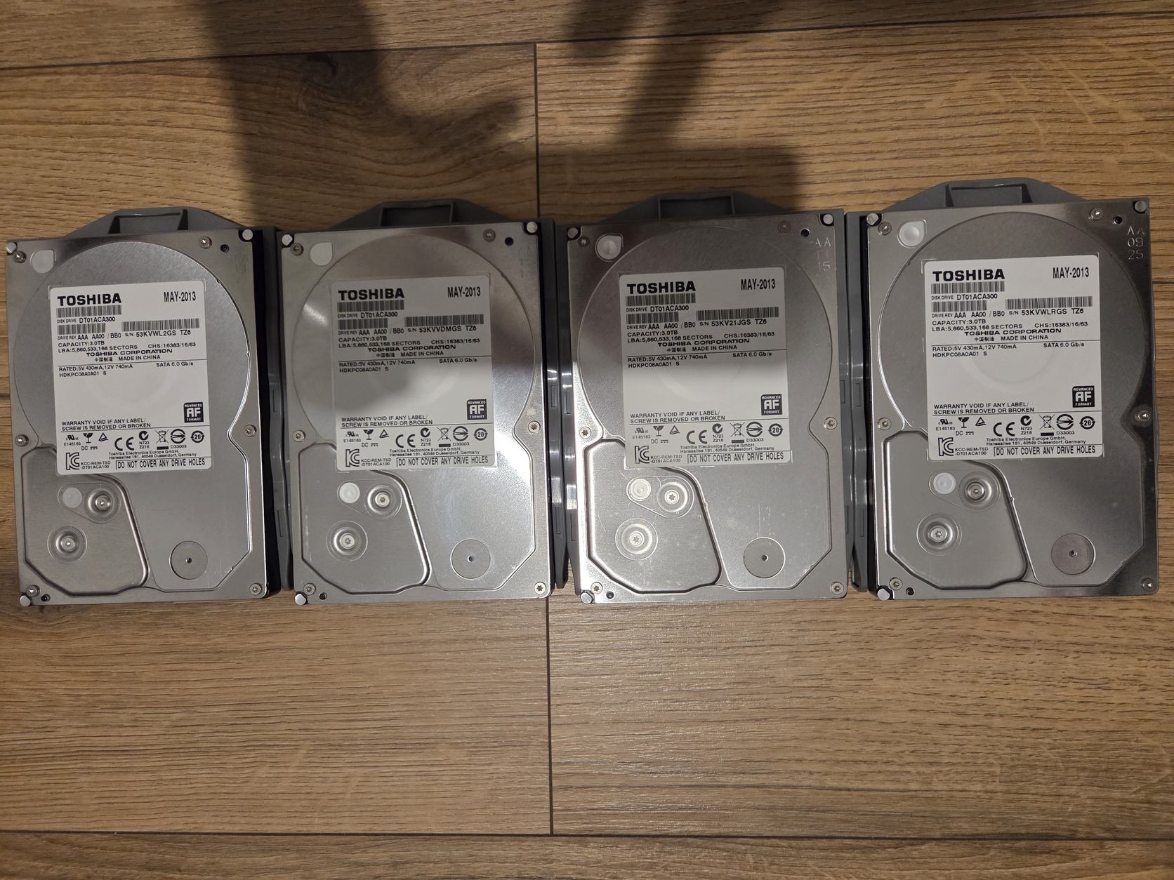 A készülékben 4 db 3 TB-os Toshiba merevlemez található, így összesen 12 TB nyers kapacitással rendelkezik.