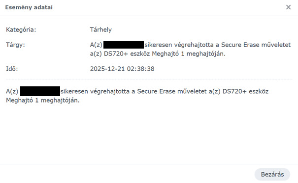 – Mindkét HDD-n Secure Erase (biztonságos törlés) lefuttatva
