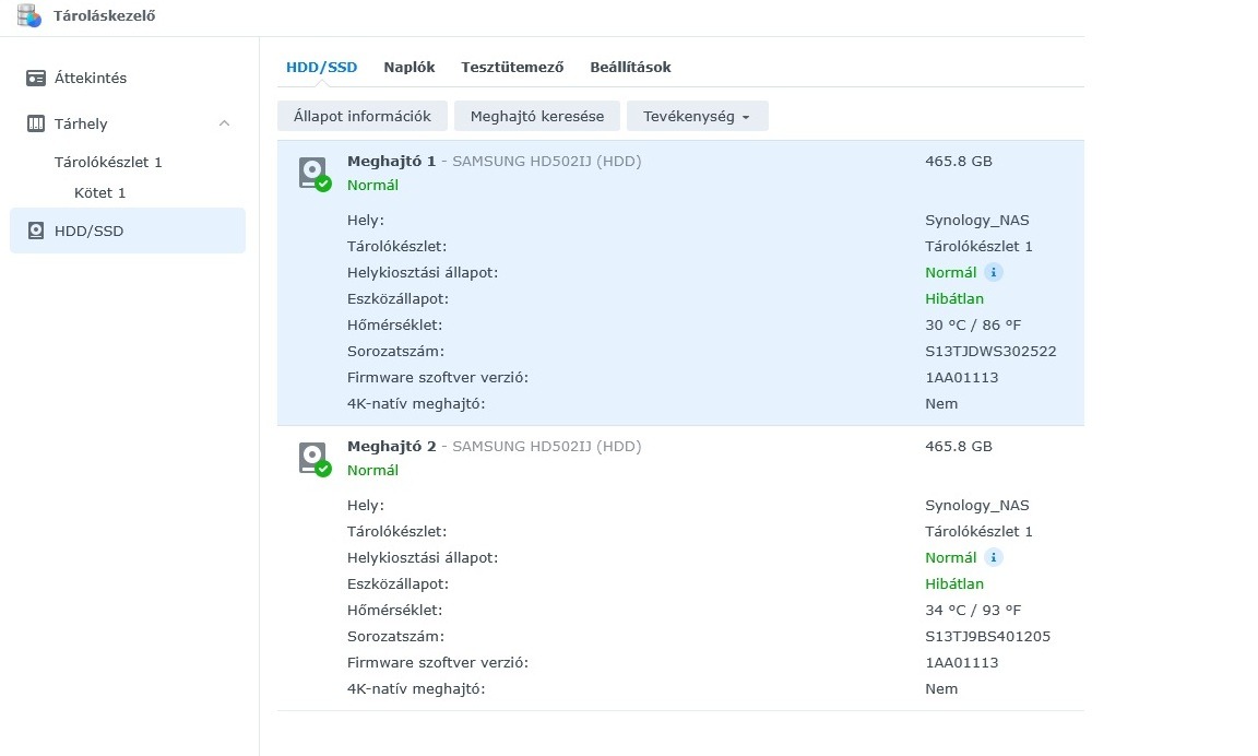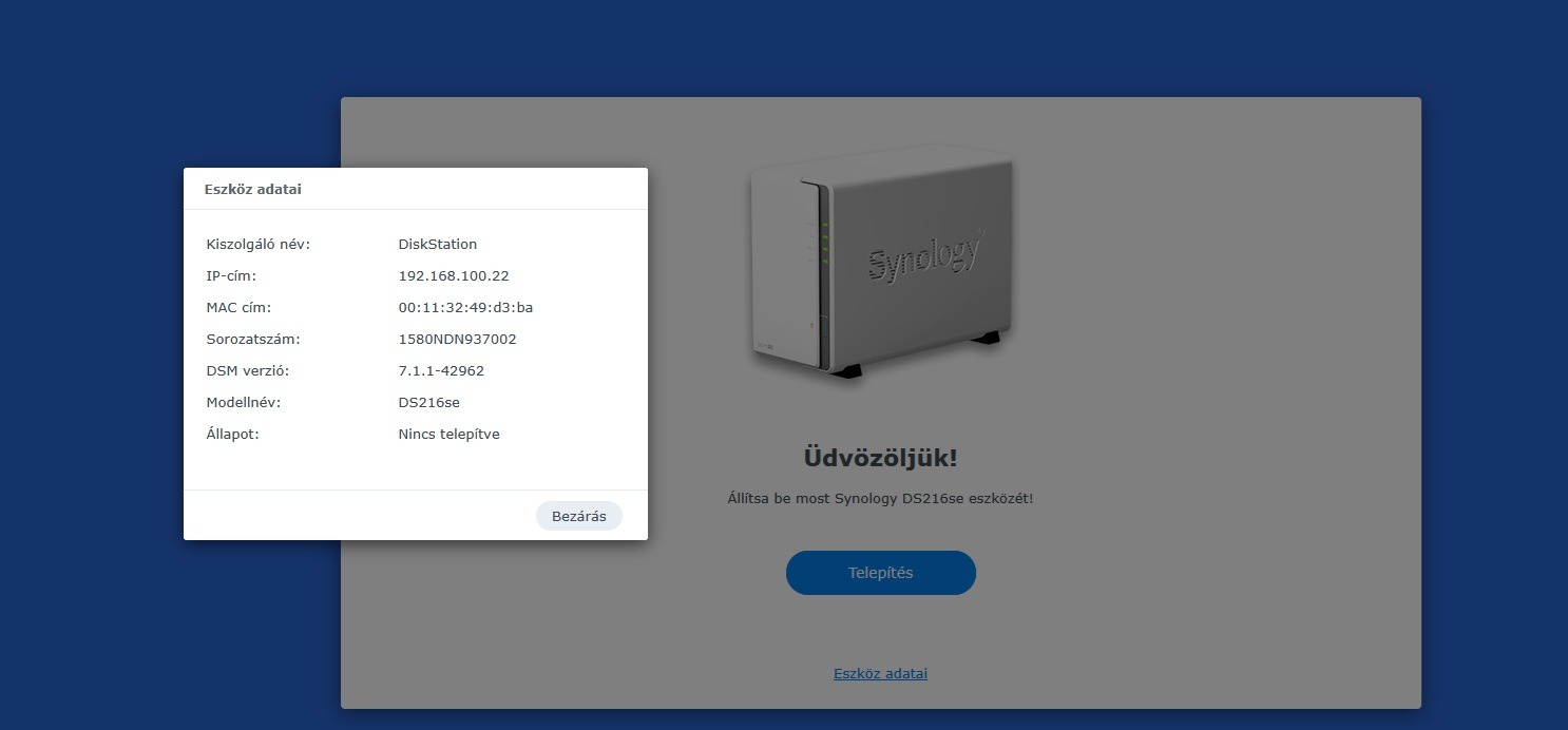 Eladó 1 db szép állapotban levő Synology DS216SE (2 lemezes) NAS szerver.