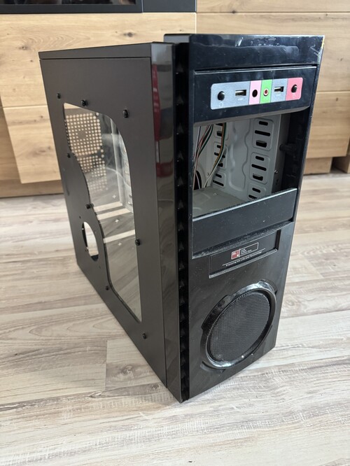 Fekete plexi oldallal (oldalsó hűtőrács hiányzik és az egyik lába), elől 12cm ventilátorral, mikrofon csatlakozó hiányzik!