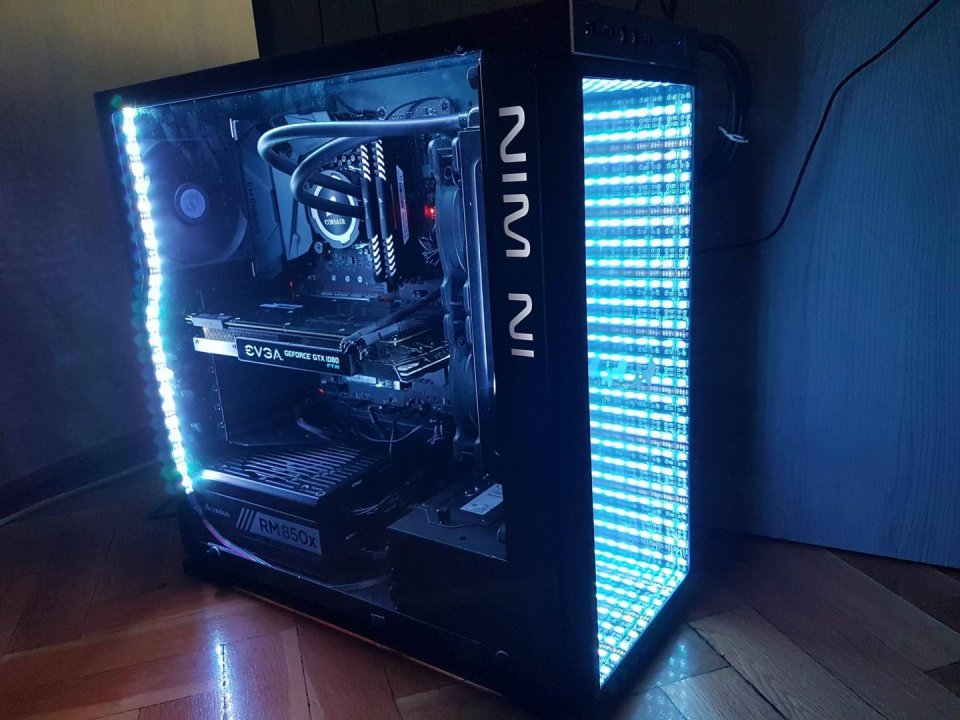 A gépház, a LED csík, és a VGA bármilyen színre állítható, és különböző efektekkel lehet őket állítgatni :) A lap piros ledes, a vízhűtő fehéren világít, és a fejen lévő karika színe cserélhető, és a RAM is fehéren világít.