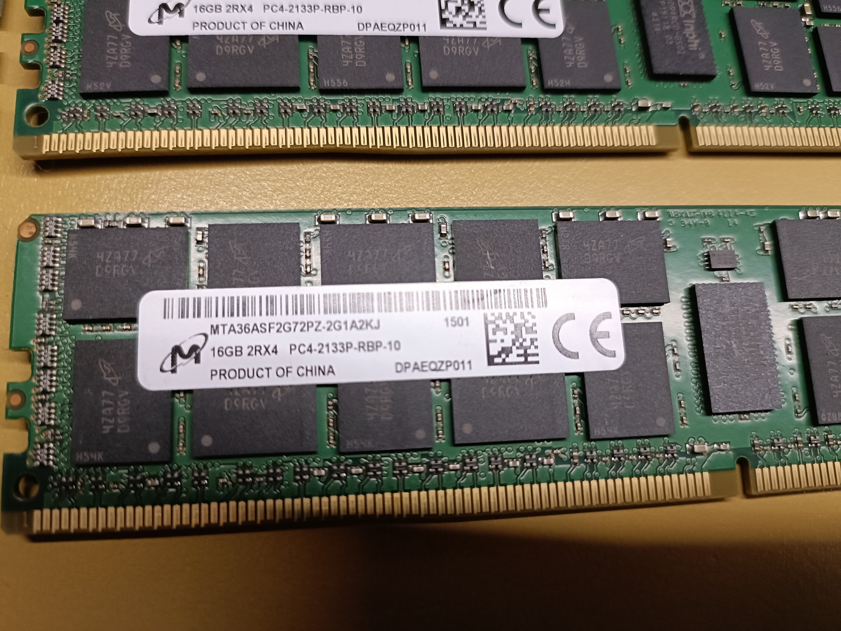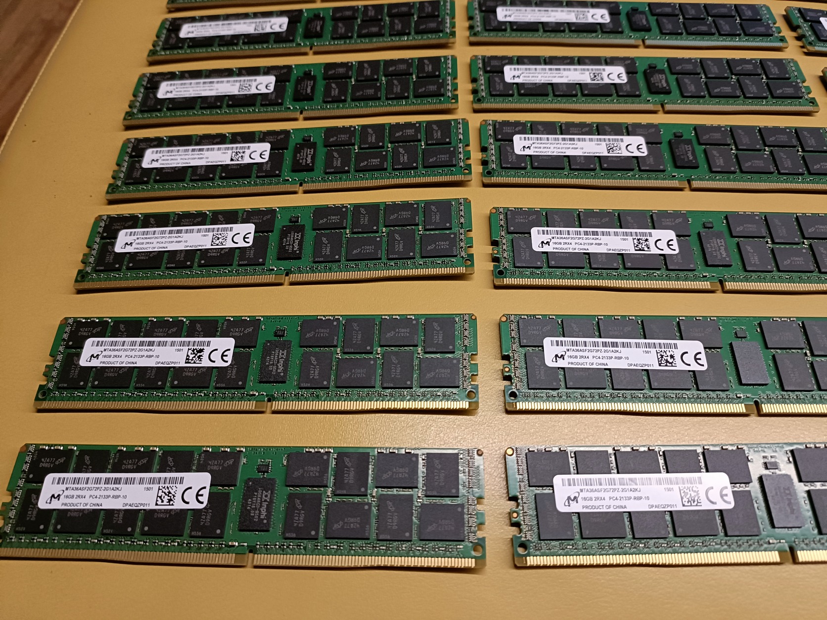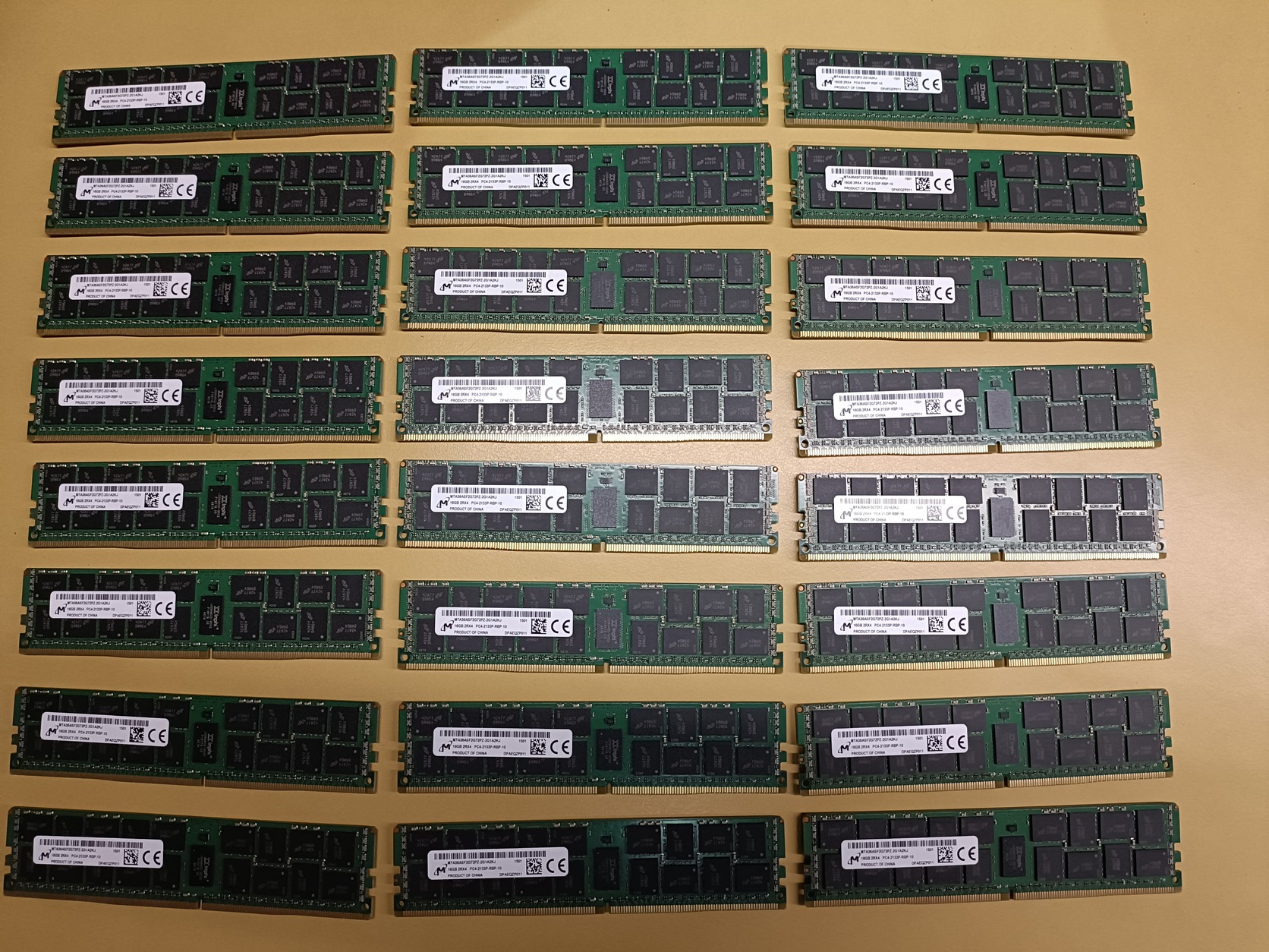 Eladó 24db Micron 16GB DDR4 2133MHz ECC Registered szerver memória (RDIMM). Típusszám: MTA36ASF2G72PZ-2G1A2KJ. Hibátlan állapotban, 2Rx4 kialakítású. Fontos: Csak ECC-t támogató szerver alaplapokkal kompatibilis!