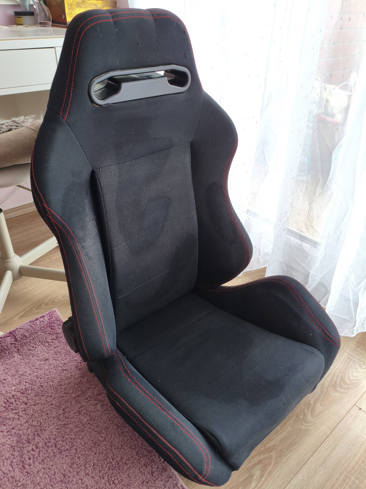 Eladó 6 évet használt ülésem. Az ülésen látható foltok mindösssze vízfoltok, mert fotózás előtt kárpittisztítottam. De természetesen a szövet 6 év alatt itt-ott megkopott, az ülés hátát a macskák kicsit megdolgozták és én is csináltam a hátára pár lyukat egy bass shaker rögzítésének kedvéért. Egy üléshuzat újjá varázsolhatja! De az ülő és háttámla felülete kiváló még mindig, a háttámla állító rendesen működik. Kemény 5 ezer forintért megválnék tőle.