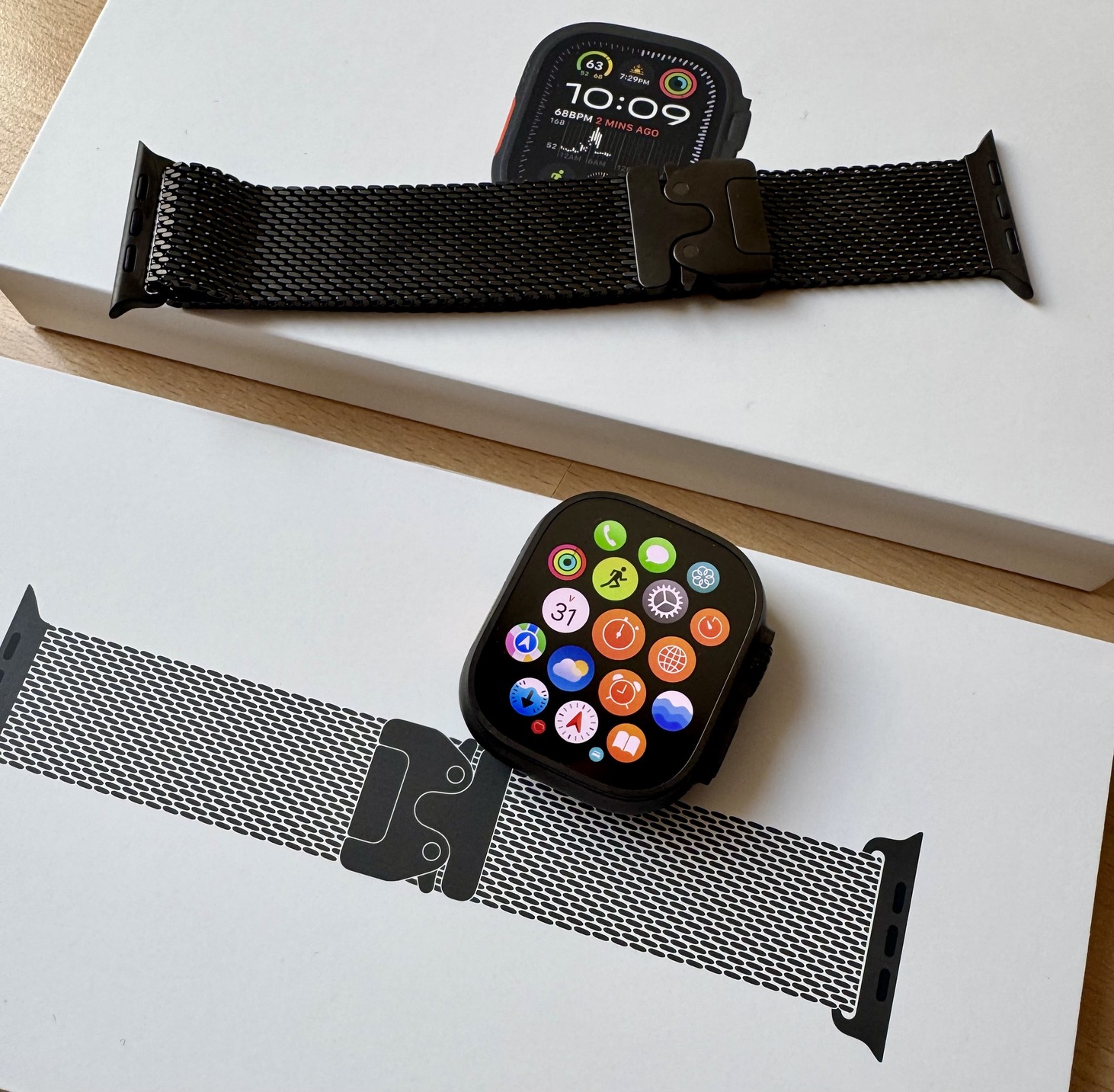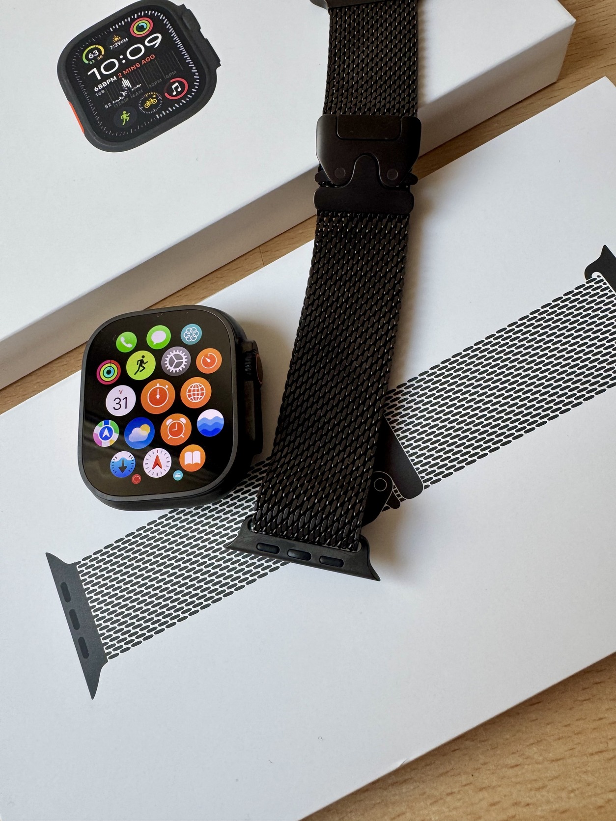szinte új Apple Watch Ultra 2 GPS + Cellular 49 mm fekete titántok titán milánói szíj 3 év garancia
