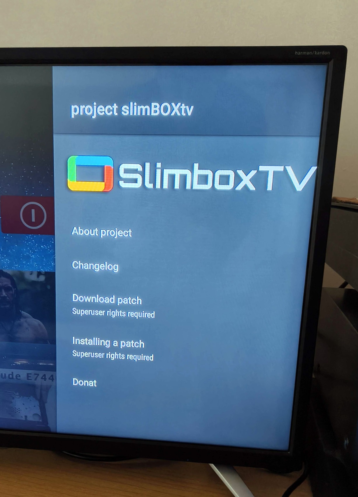SlimBox TV telepítve, amivel az alap készüléknél több funkció elérhető (pl. hirdetések nélküli YouTube - "SmartTube").