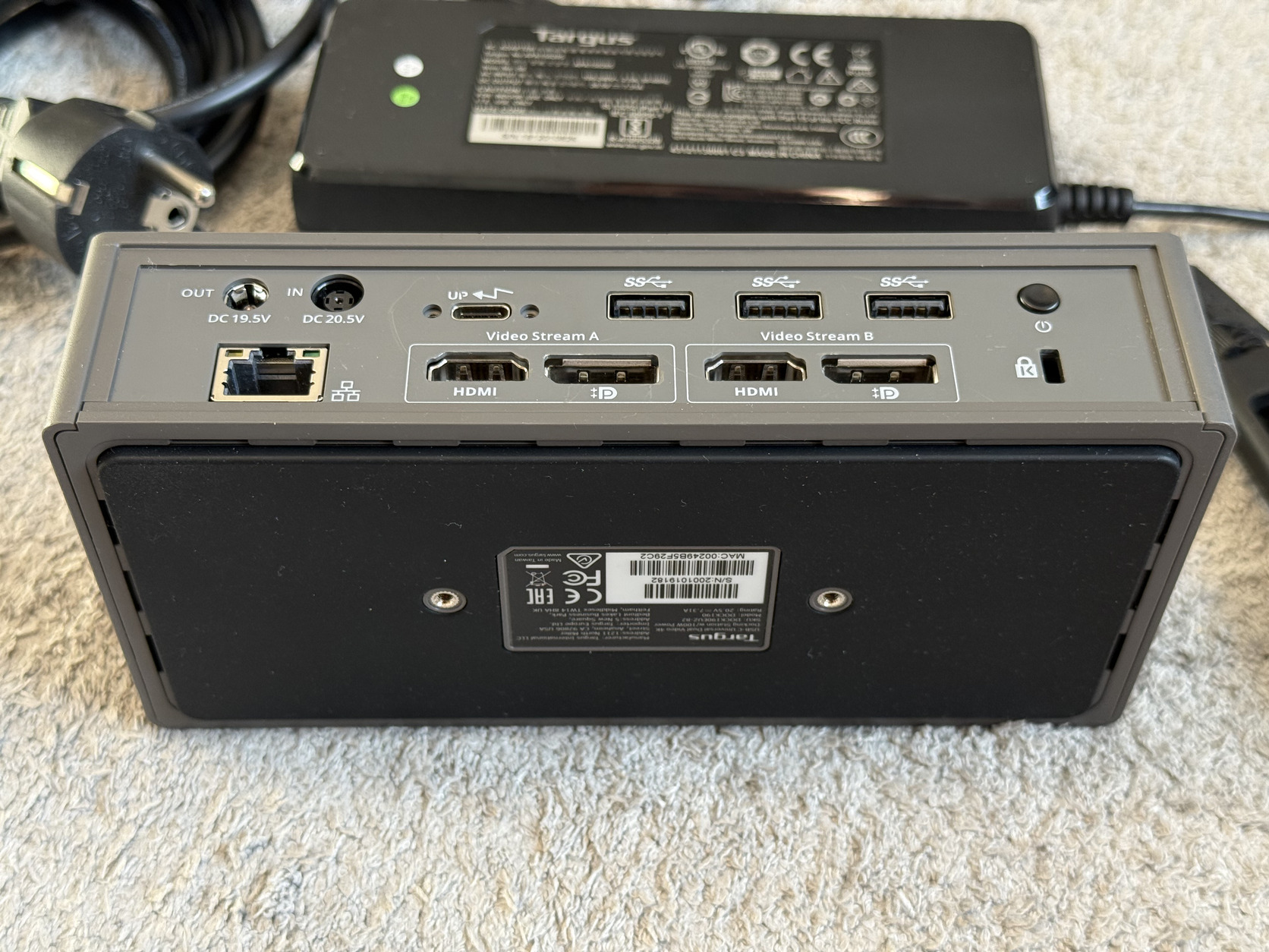• Csatlakozások: 4 x USB 3.0 (ezek közül az egyik gyorstöltő port iOS eszközök számára), 1 x USB-C upstream (100W töltési lehetőséggel, Power Delivery 2.0), 1 x USB-C downstream (adatátvitelhez), Gigabit Ethernet, 3,5mm audio be- és kimenet (headset csatlakozó)