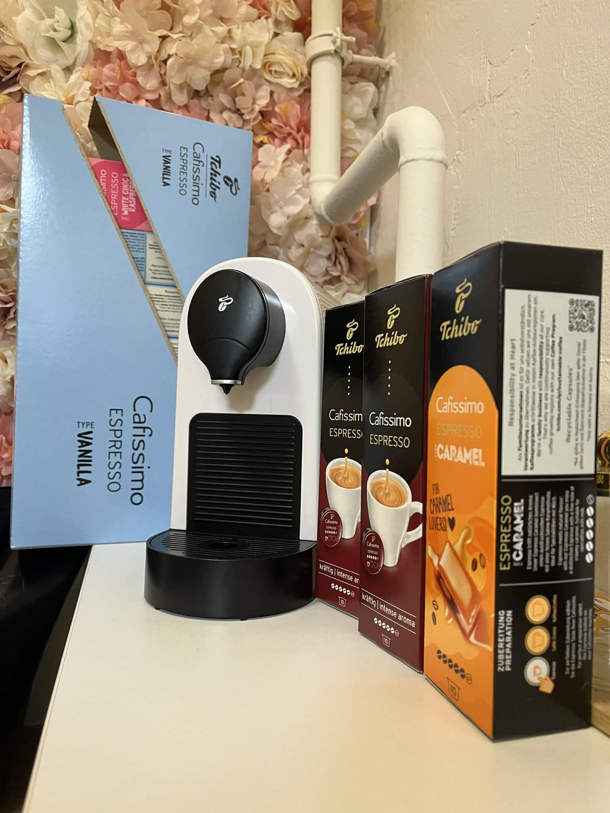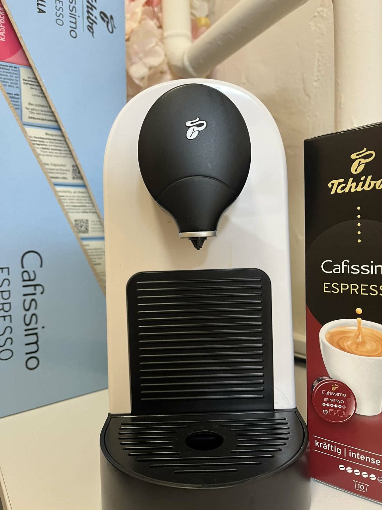 Eladó keveset használt Tchibo Cafissimo Pure+ kávégép, fehér színben, 12 doboz kapszulával: