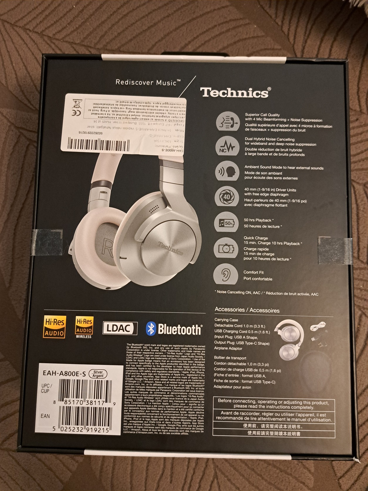 Eladó egy bontatlan csomagolású Technics A800 ezüst színű HIFi-Bluetooth fejhallgató.