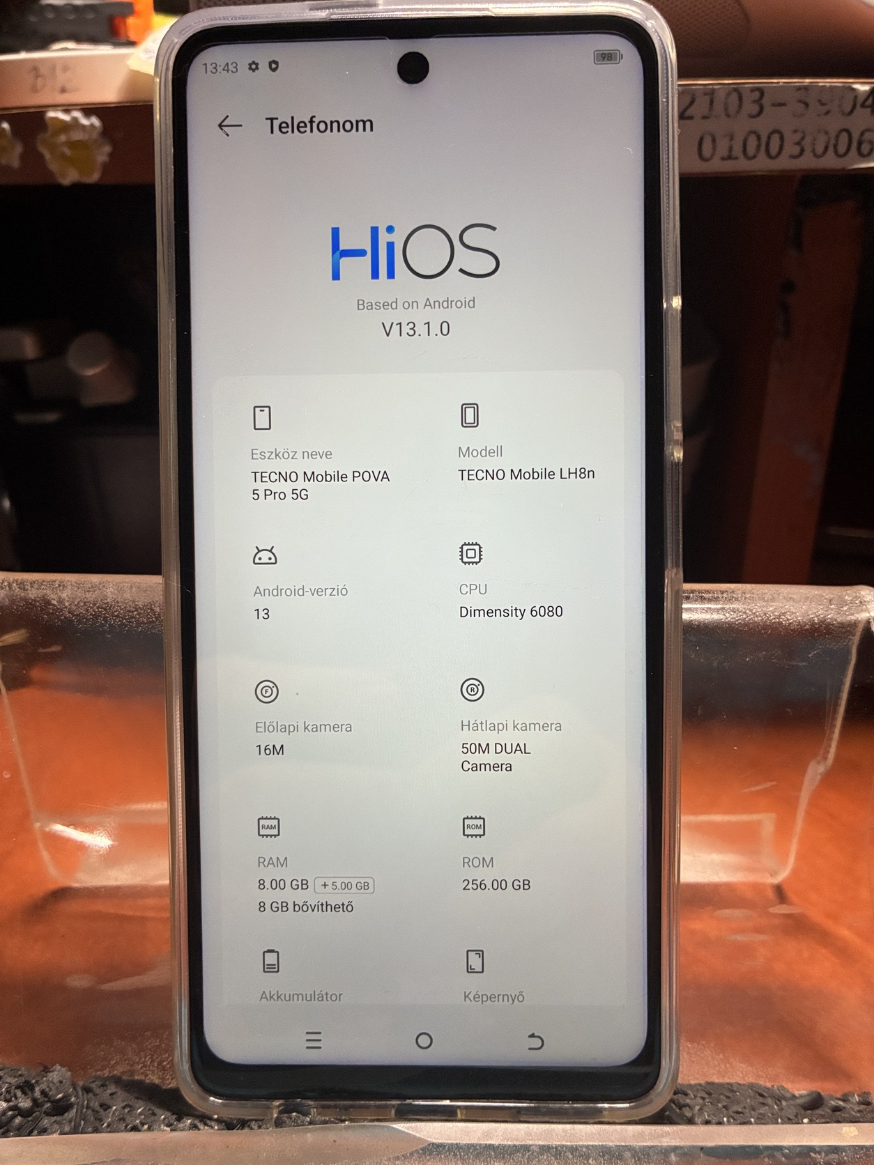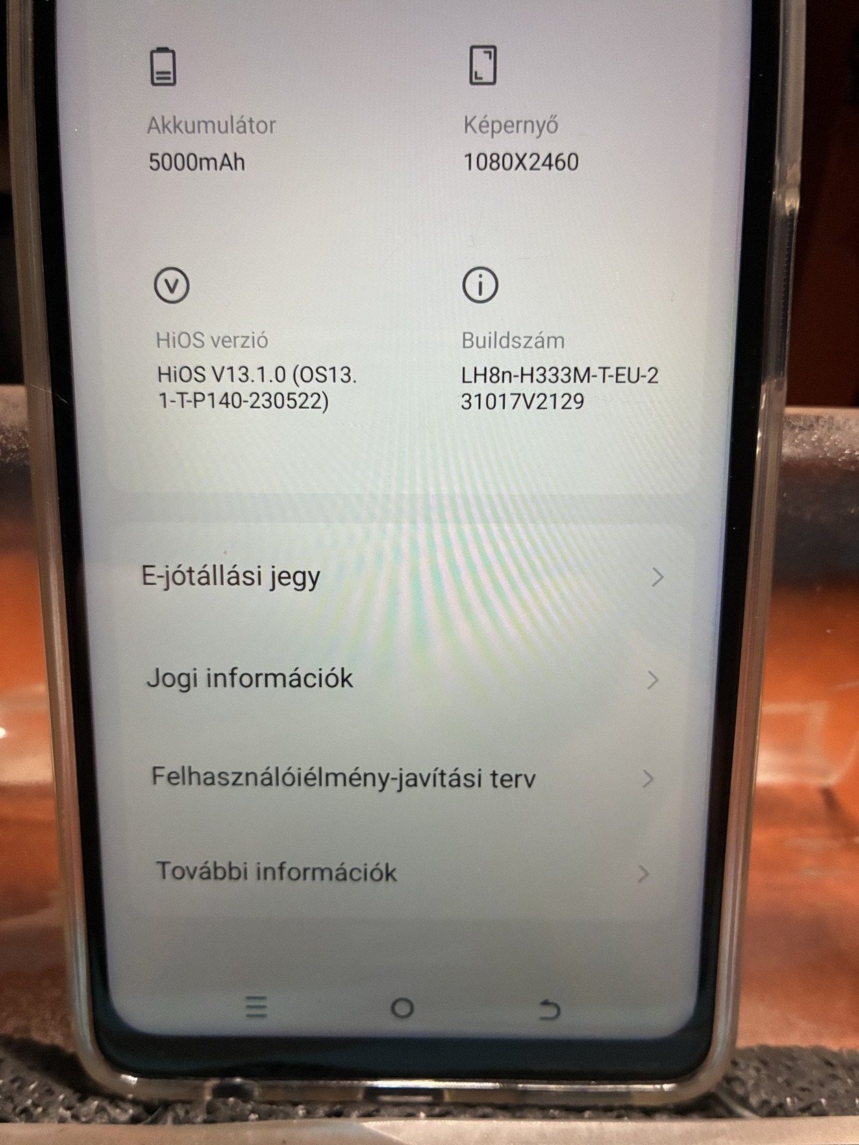 Operációs rendszer: Android 13 / Hios