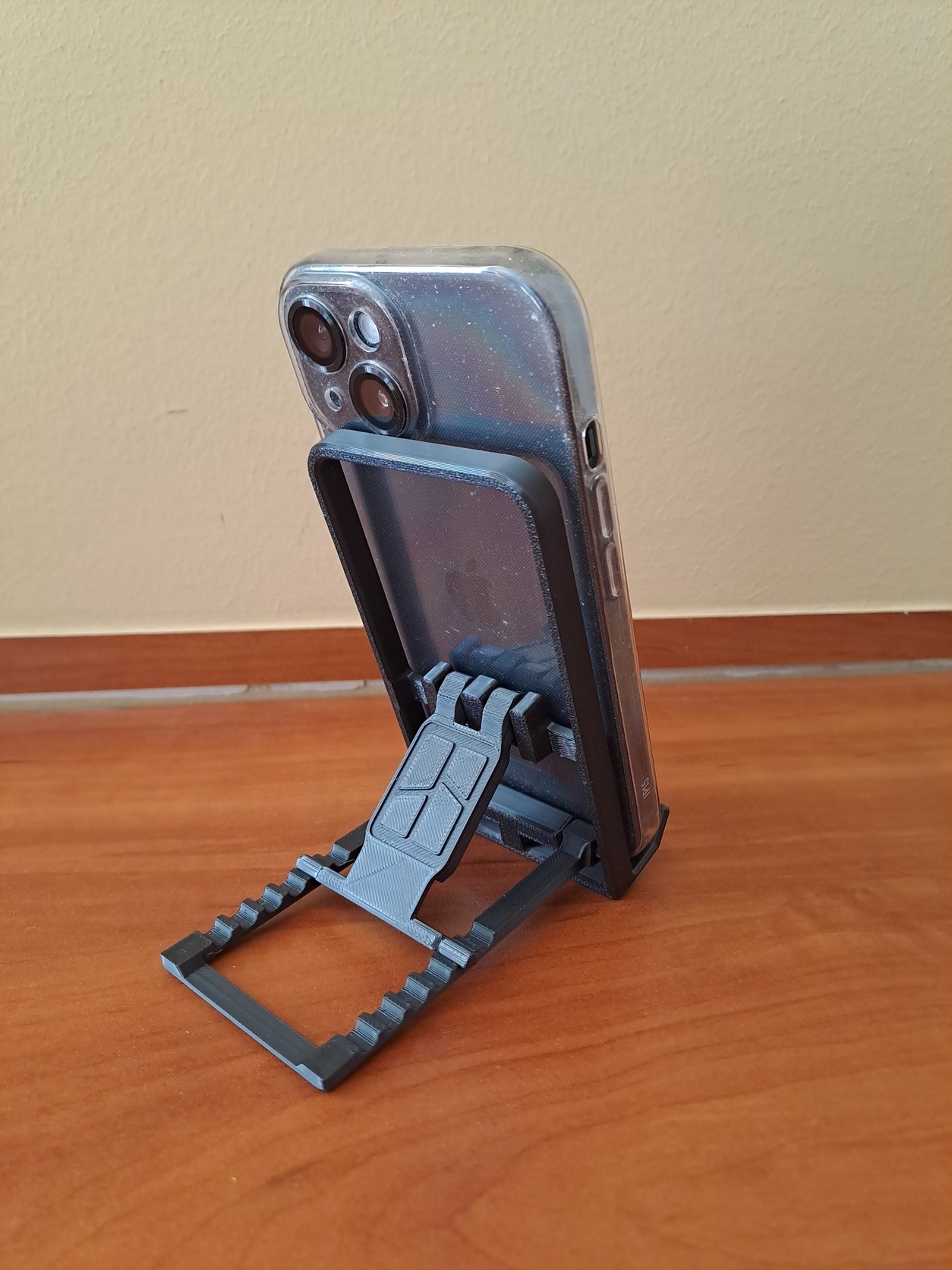Állítható dőlésszögű telefontartó állvány, teljesen összecsukható.