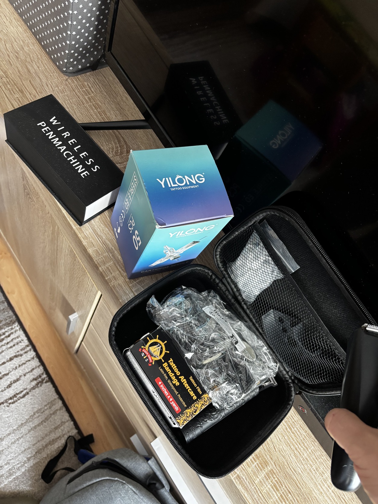 Képen látható tattoo keszlet tűk gyakorló bőrök tinták gép stb egyben eladó