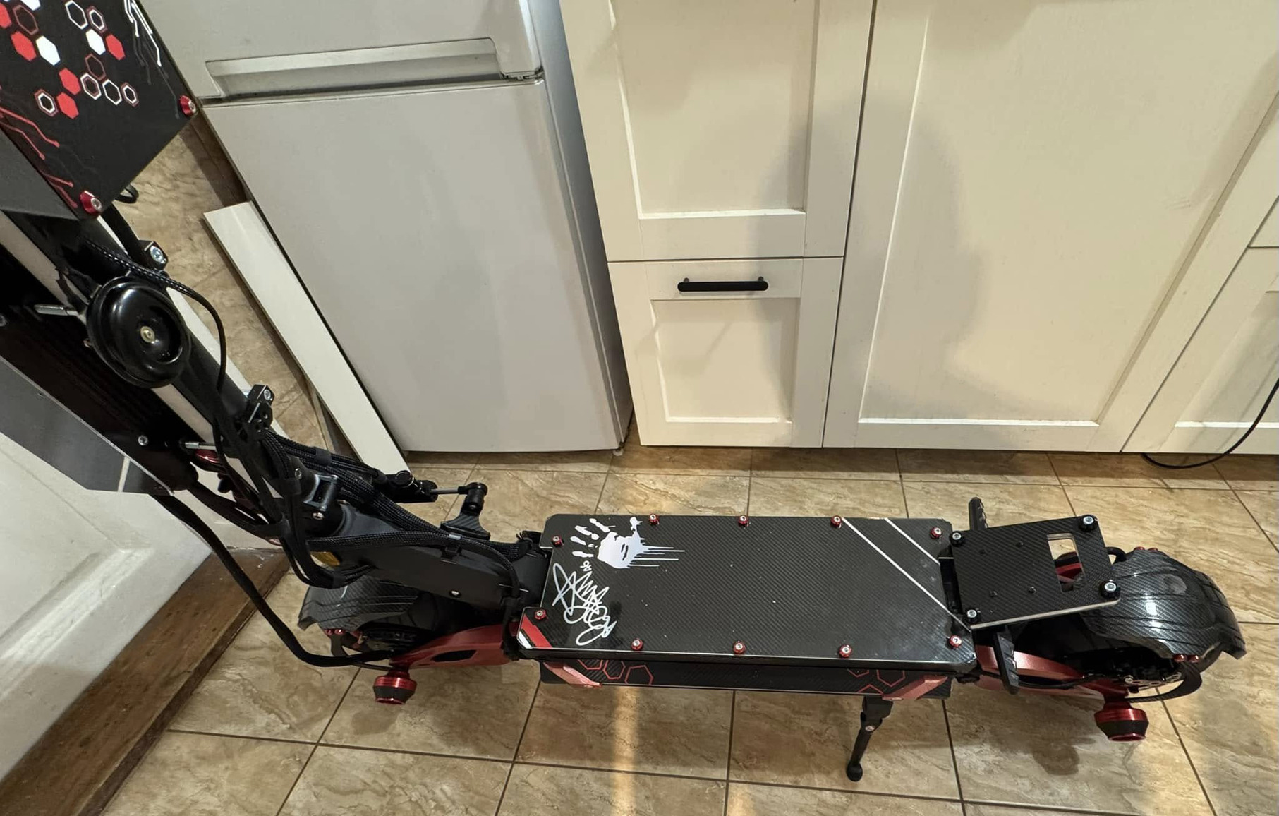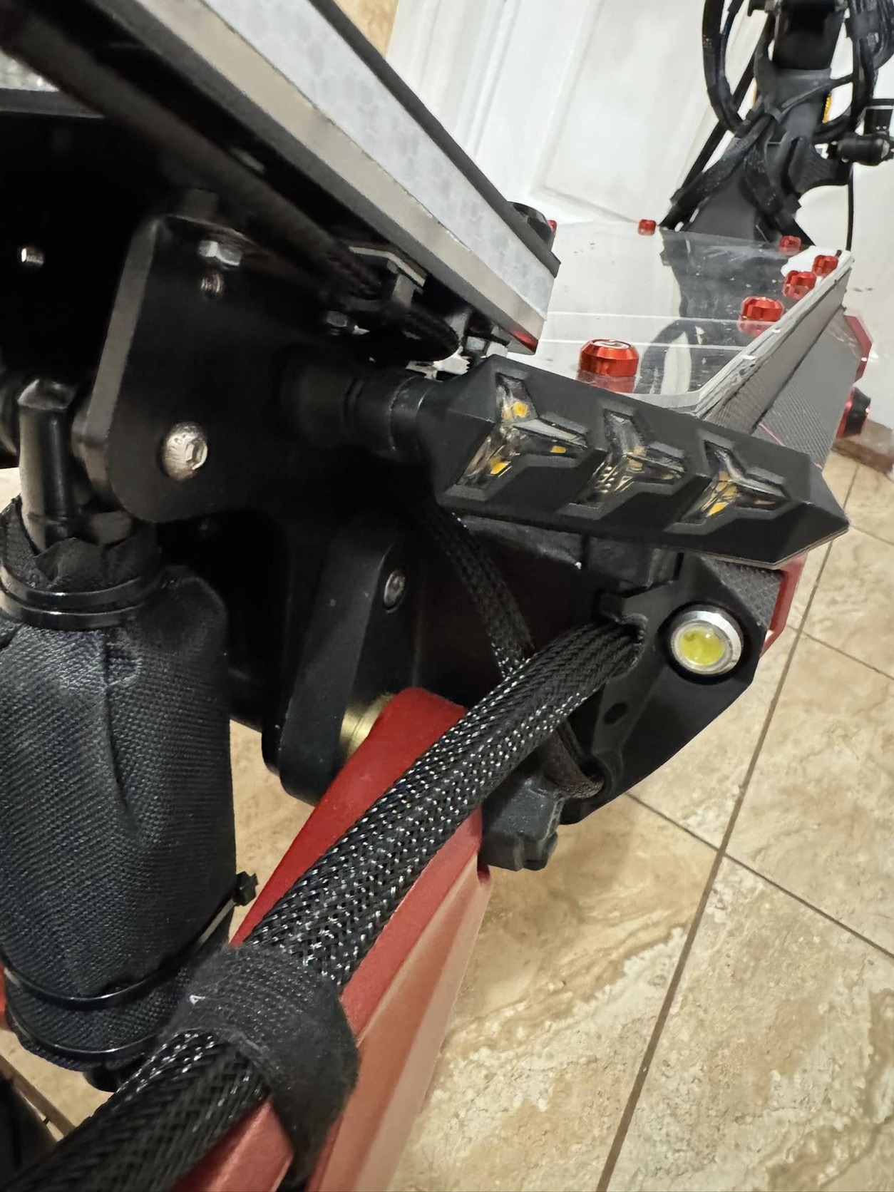 Egyedi acél lábtámasz, emelhető vele a roller - beépített COB LED féklámpának..