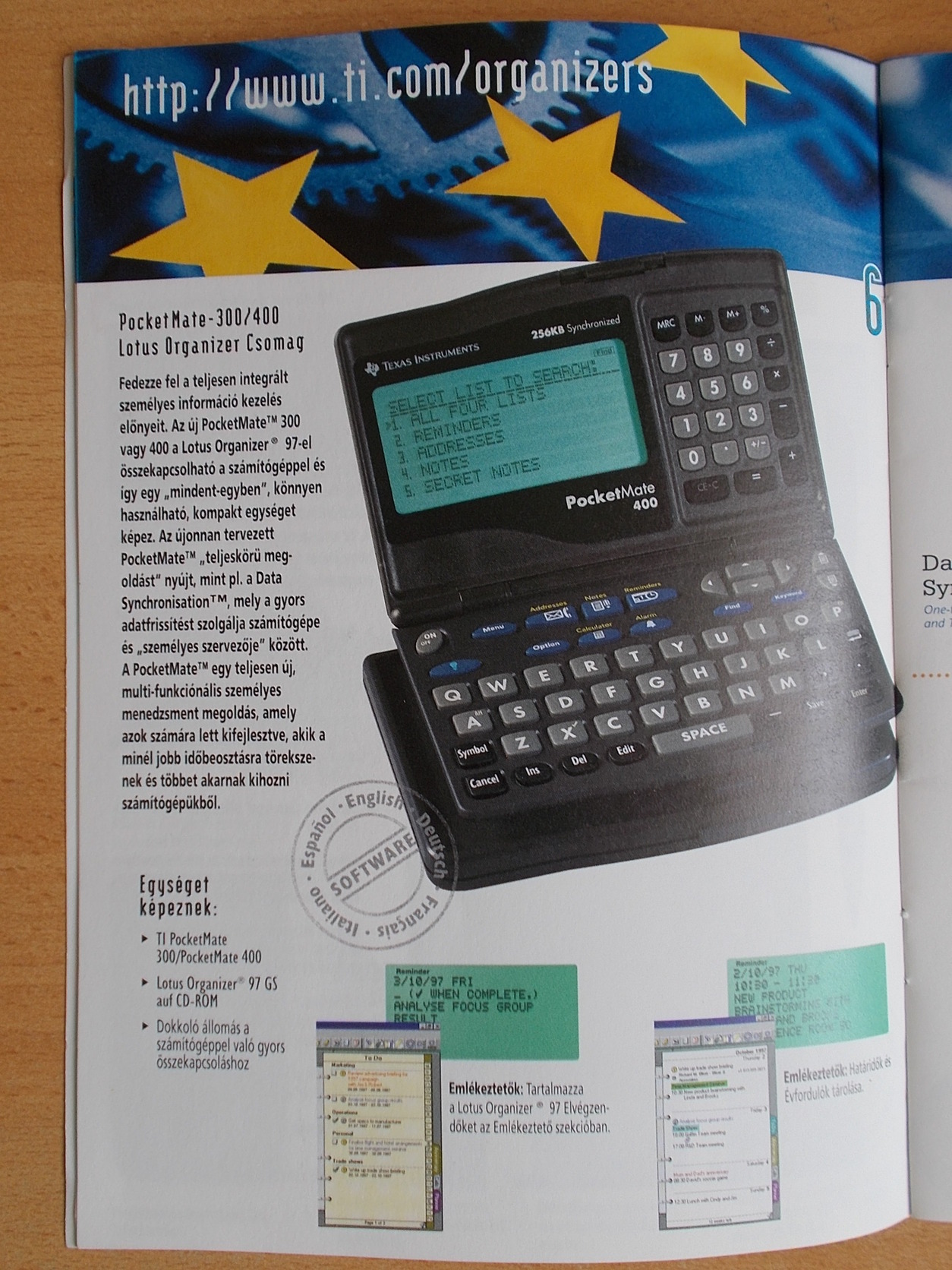 Texas Instruments TI Pocket Mate 400 személyi szervező