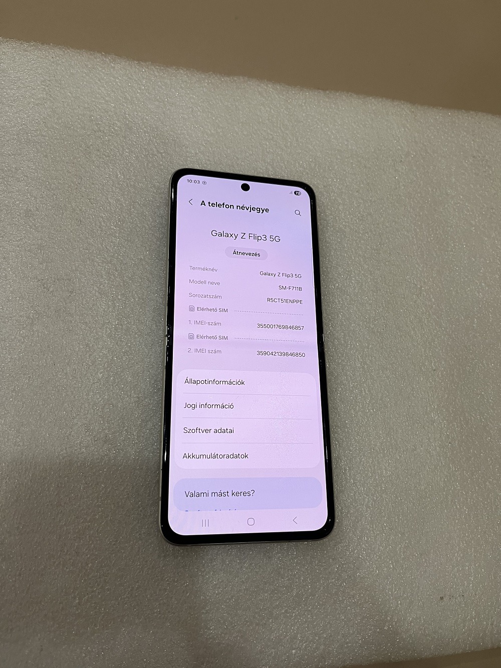 SAMSUNG Galaxy Z Flip 3 128GB, Cream FÜGGETLEN kijelzőben kis karc / képeken / látszik