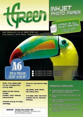 180g A6 TGreen Photo papír, fényes(20db/cs) 199 Ft